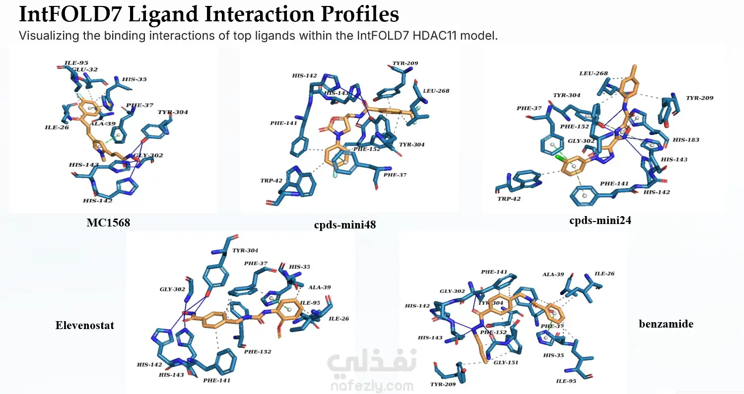 تنفيذ تحليل Docking جزيئي بين المركبات المرشحة والبنية المتوقعة لإنزيم HDAC11 باستخدام نموذج AlphaFold.