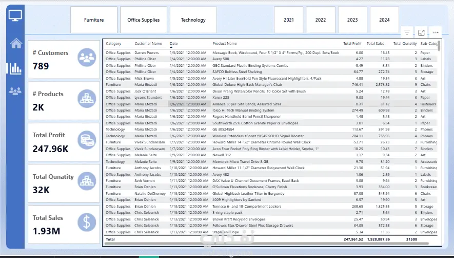 مشروع: داش بورد تحليل المبيعات باستخدام باور بي آي قمت ببناء لوحة تحكم تفاعلية لتحليل المبيعات عبر ثلاث فئات: الأثاث، المستلزمات المكتبية، والتكنولوجيا — والمشروع ده علّمني بقدر ما علّمني الناتج النهائي. التحدي الحقيقي كان في البيانات الخام: تناقضات، قيم ناقصة، وغياب تام للهيكل. الحل جه على مراحل — تنظيف البيانات وتحويلها عبر باور كويري، ثم بناء نموذج بياني على شكل نجمة يربط جدول المبيعات بجداول التاريخ والمنتج والعميل والمنطقة، وبعدها كتابة مقاييس بلغة داكس لحساب إجمالي المبيعات والأرباح والكميات وعدد العملاء. أبرز ما كشفت عنه البيانات: 1.93 مليون دولار مبيعات، 247 ألف دولار أرباح، 789 عميل — وقطاع التكنولوجيا يتصدر الأرباح رغم انخفاض حجمه، والربع الرابع من السنة يسجل ارتفاعاً موسمياً ثابتاً كل عام، فضلاً عن أن شريحة صغيرة من العملاء تولّد جزءاً كبيراً من الإيراد. كل خطوة من البيانات الفوضوية للرؤية الواضحة هي مهارة في حد ذاتها.