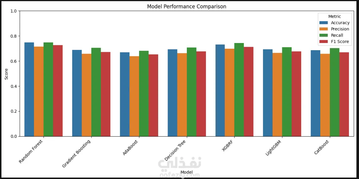 اختيار نموذج Random Forest كأفضل نموذج بعد تحقيق أعلى معدل F1-Score.