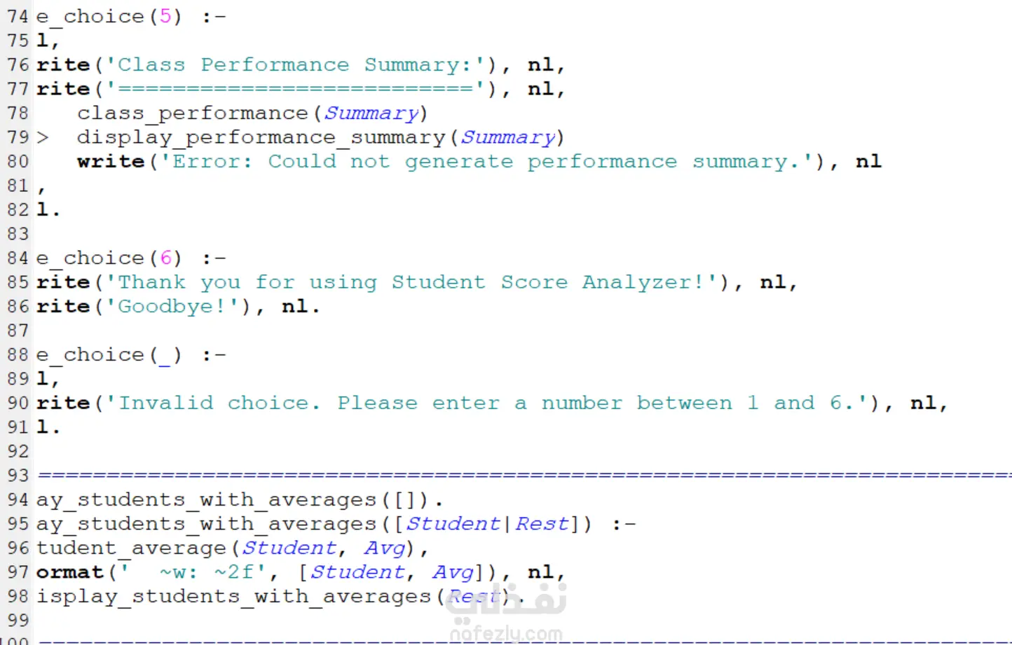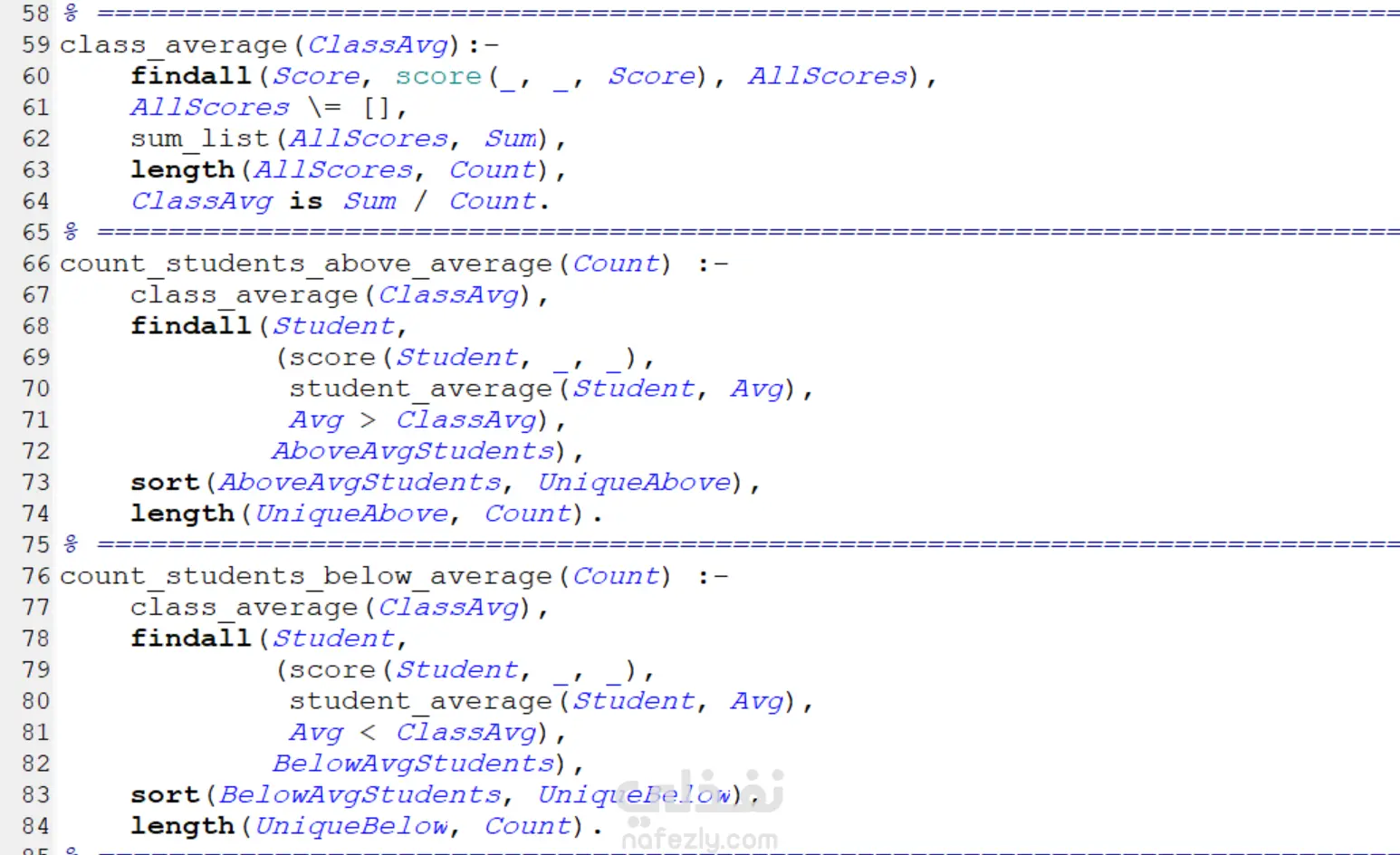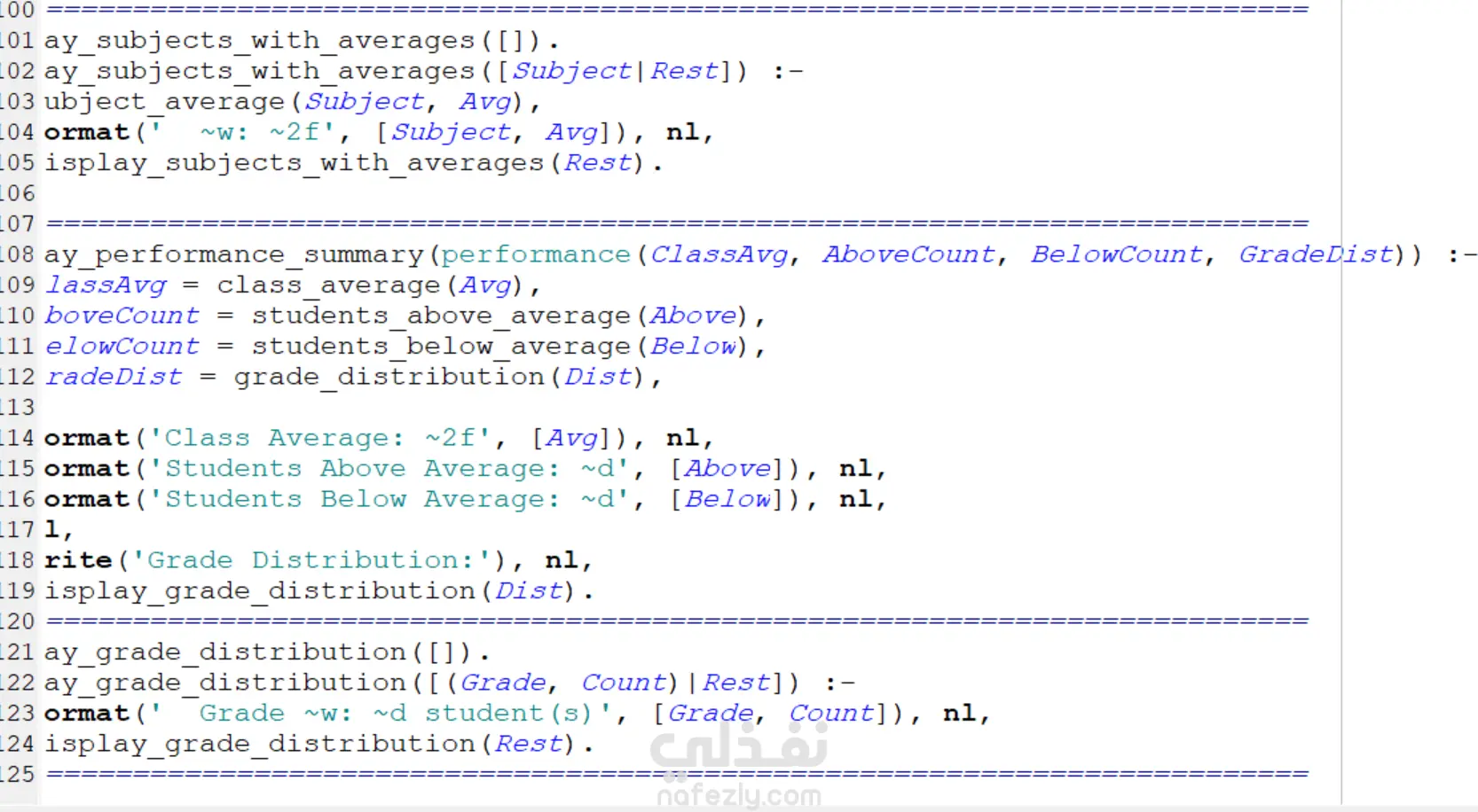 تم تطوير نظام تحليلي قائم على لغة Prolog لتحليل درجات الطلاب وتقييم أدائهم الأكاديمي باستخدام البرمجة المنطقية. يعتمد النظام على قاعدة معرفة تحتوي على درجات الطلاب في مواد مختلفة، ويستخدم قواعد استدلال (Rules) لاستخراج معلومات وتحليلات دقيقة.