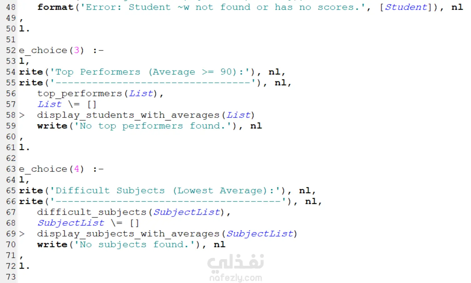 استخراج الطلاب المتفوقين