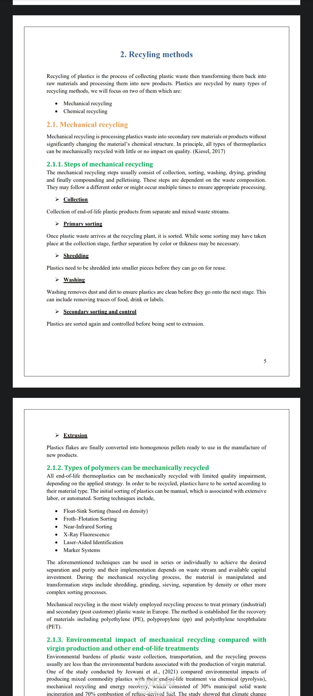 This project is a technical research article focused on the chemical recycling of plastic waste, with particular emphasis on polyethylene terephthalate (PET). The work explores the growing environmental problem of plastic accumulation and discusses the importance of sustainable recycling technologies in reducing pollution and recovering valuable materials. The article provides a structured overview of plastic types, their common applications, and the significance of recycling in modern waste management systems. It also compares mechanical recycling with chemical recycling methods, highlighting the advantages, limitations, and environmental impacts of each approach. Several chemical recycling technologies are analyzed in detail, including pyrolysis, gasification, hydrolysis, solvolysis, and enzymatic recycling. The article explains how these processes break down plastic polymers into useful raw materials such as fuels, monomers, or industrial feedstocks that can be reused in manufacturing. This work demonstrates the ability to research, organize, and write structured technical content in the fields of chemical engineering, sustainability, and industrial processes, making complex scientific concepts accessible in a clear and professional format.