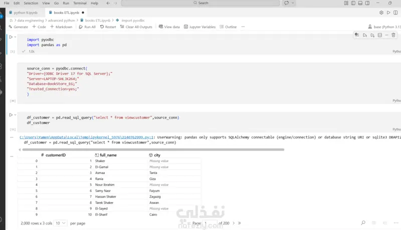 كتابة وتنفيذ استعلامات SQL ومعالجة البيانات باستخدام بايثون