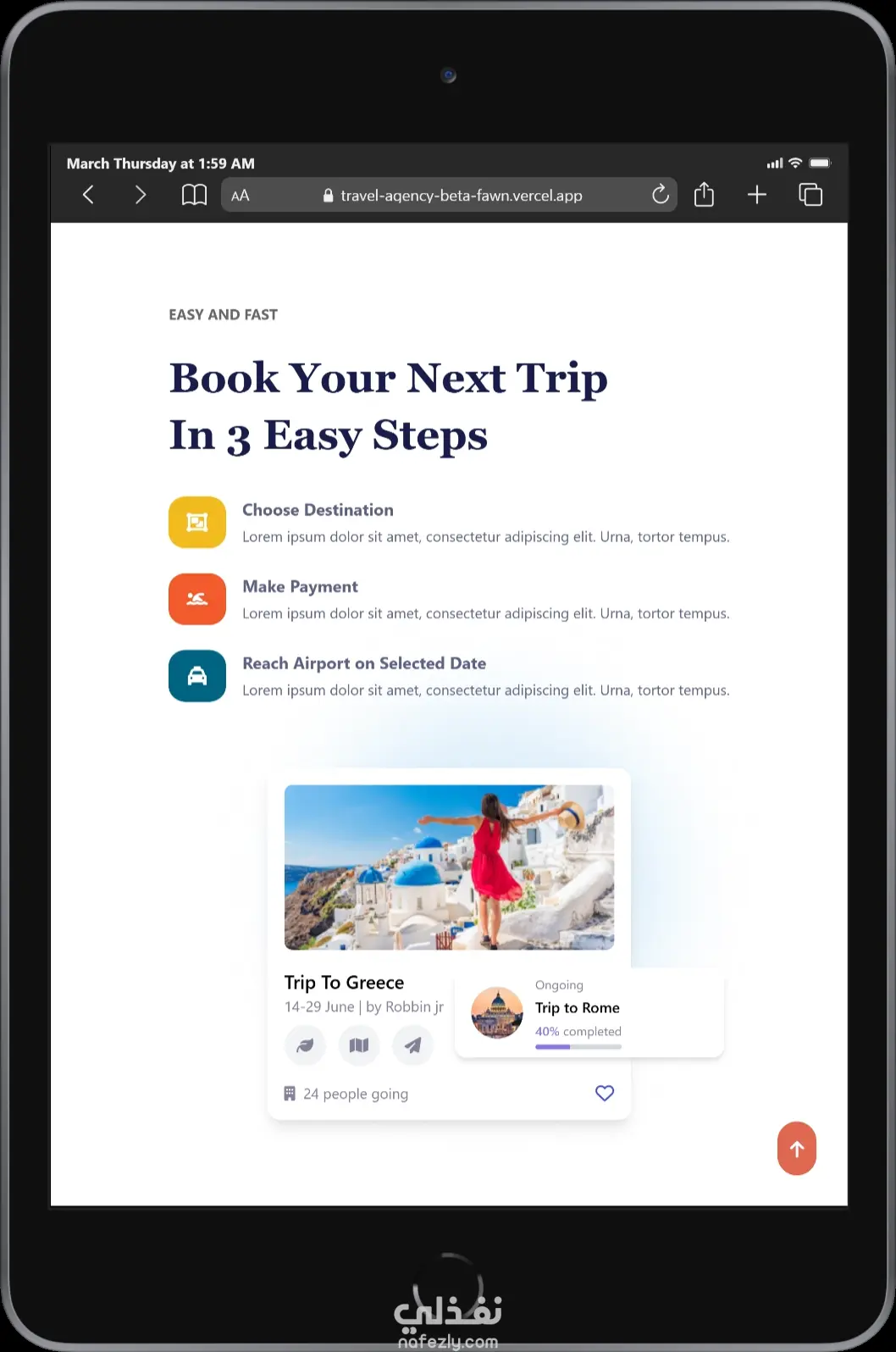 قمت بتصميم وتطوير صفحة هبوط احترافية لشركة سياحة، مع التركيز على إبراز الخدمات بشكل جذاب وتحسين تجربة المستخدم.