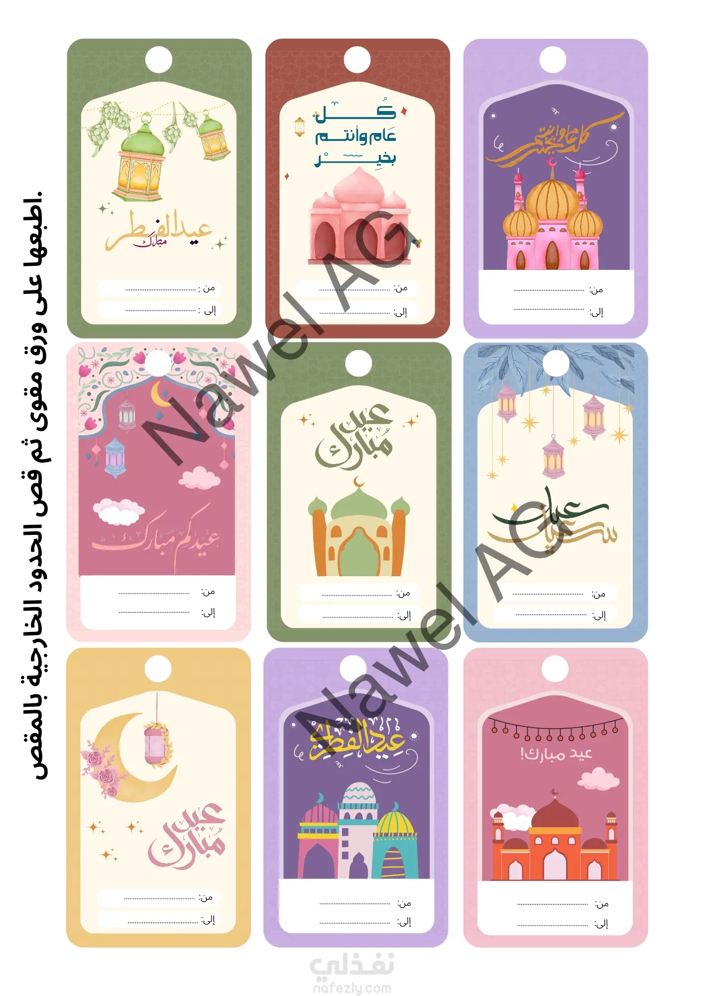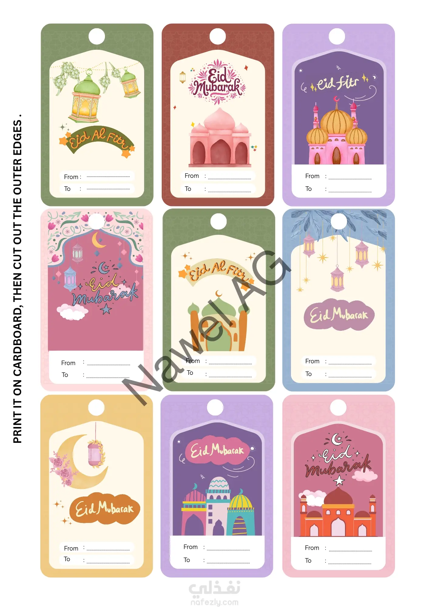 18 تصميم مختلف لبطاقات تعليقو تاقات للعيد جاهزة للطباعة