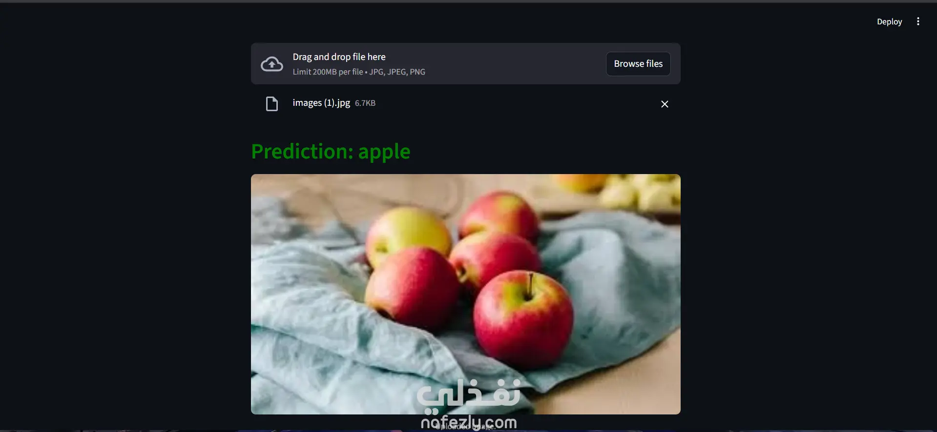 قمت بتطوير نموذج تصنيف صور متعدد الفئات (Multi-Class Classification) باستخدام شبكة عصبية التفافية (CNN) مبنية من الصفر لتصنيف الفواكه والخضروات إلى 36 فئة مختلفة بدقة عالية. المشروع يعتمد على بناء نموذج عميق قادر على استخراج الخصائص البصرية للصورة تدريجيًا للوصول إلى تصنيف دقيق ومستقر، مع مراعاة تقليل الـ Overfitting وتحقيق تعميم جيد على بيانات الاختبار. عمارية النموذج تم تصميم النموذج باستخدام: 5 Convolutional Blocks Conv2D Batch Normalization ReLU Activation MaxPooling Flatten Layer Dense Layer (256 وحدة) Dropout (0.3) Output Layer (Softmax – 36 فئة) تم تصميم المعمارية لاستخراج الخصائص البصرية بشكل هرمي مع الحفاظ على استقرار التدريب وتقليل التذبذب. إعدادات التدريب Optimizer: Adam Loss Function: Sparse Categorical Crossentropy Batch Size: 32 Epochs: 30 EarlyStopping (Patience = 5) لمنع الإفراط في التعلّم التحديات التي واجهتني وكيف تم حلها Overfitting استخدام Dropout إضافة Batch Normalization تطبيق EarlyStopping استقرار التدريب دمج Batch Normalization داخل كل convolution block تحسين النشر (Deployment) حفظ النموذج بصيغة model.h5 تجهيز Pipeline للتنبؤ بصورة واحدة ضبط إعادة تحجيم الصور ديناميكيًا داخل تطبيق Streamlit لنتائج دقة قوية على بيانات الاختبار تعميم جيد بين التدريب والتحقق استقرار في منحنيات الـ Loss و Accuracy نموذج قابل لإعادة الاستخدام في مشاريع Computer Vision مستقبلية