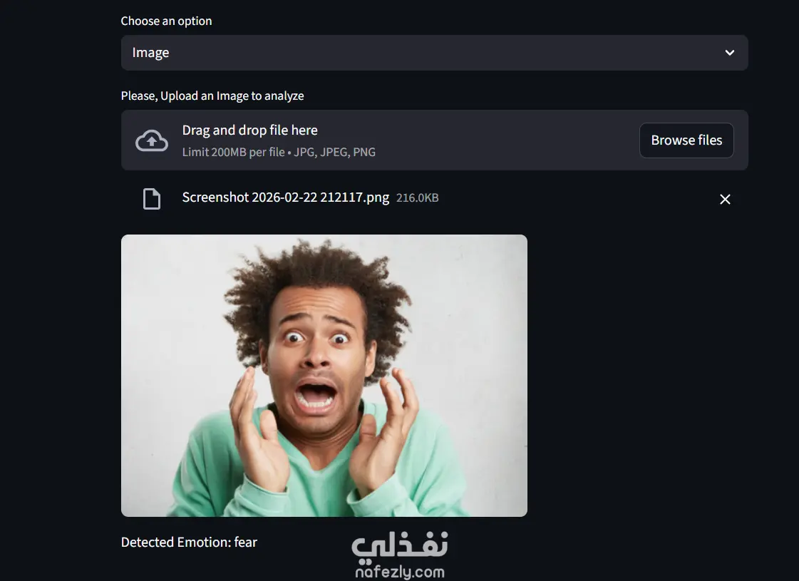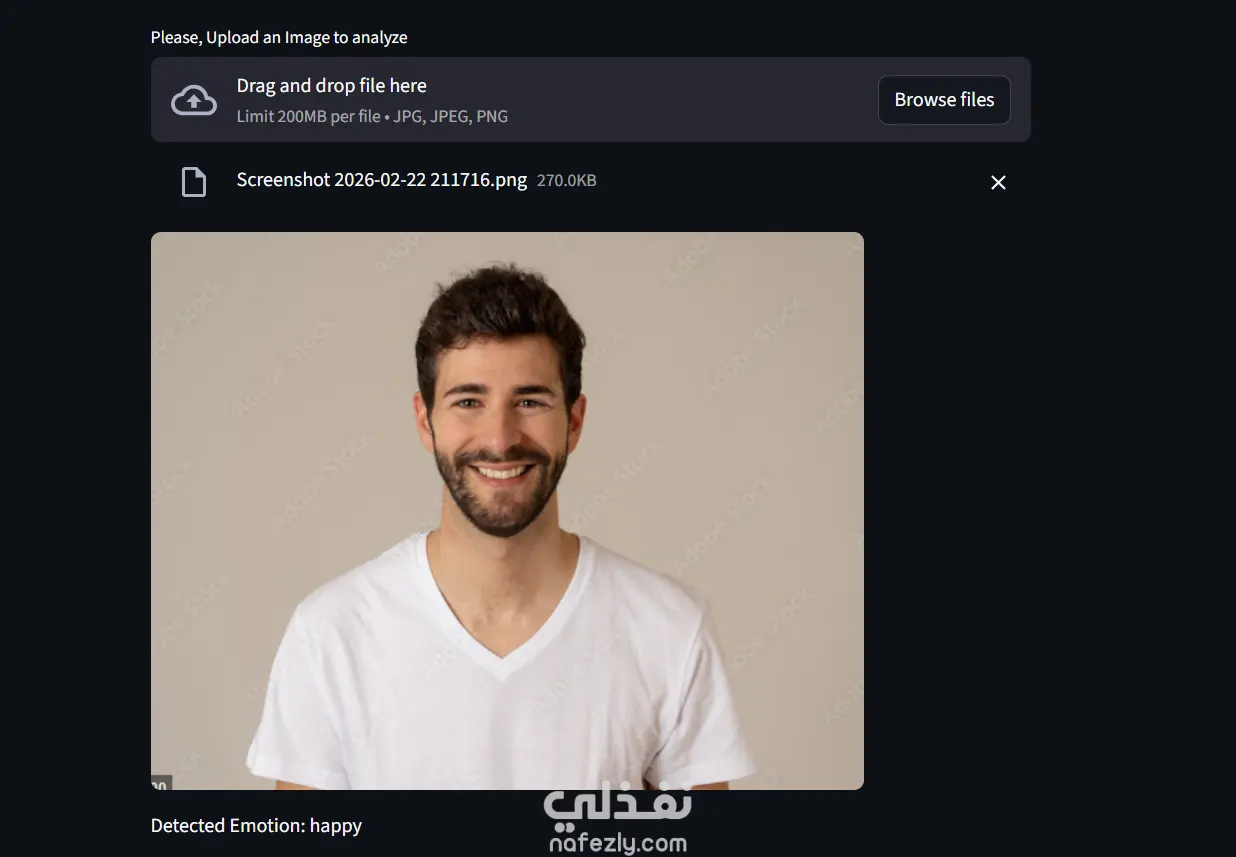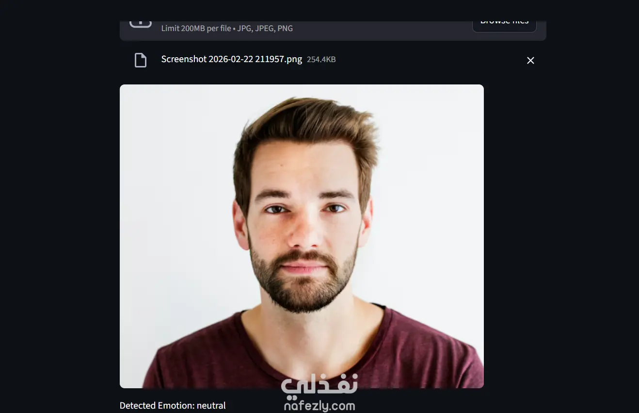 المشروع عبارة عن تطبيق Human Emotion Recognition تم تطويره باستخدام Python وتقنيات Computer Vision. يقوم التطبيق بتحليل الصور أو الفيديوهات لاكتشاف الوجوه والتعرف على المشاعر المختلفة مثل السعادة والحزن والغضب، يعرض التطبيق النتيجة مباشرة أسفل الصورة بعد التحليل، مما يوفر تجربة استخدام سهلة وسريعة ,تم تصميم الواجهة لتكون بسيطة وواضحة.