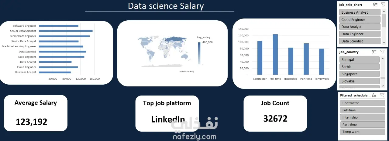 Goal: Analyze Data Jobs Around The World Tools: Excel Description:” Analyzed A Dataset Of 32k+ Rows And Derived Key Insights To Design A Dashboard Using Excel Pivot tables.“