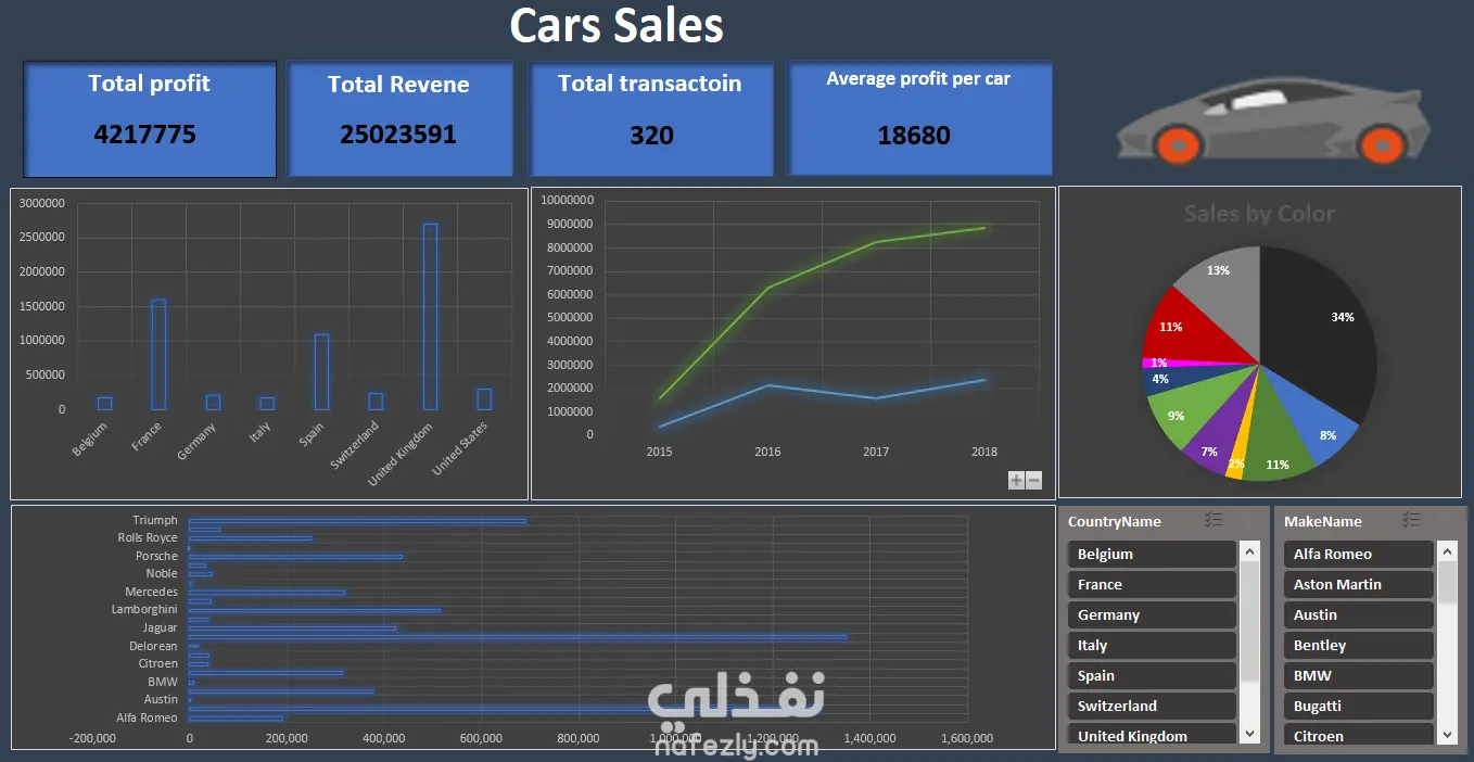 مشروع متكامل لتحليل بيانات مبيعات السيارات عبر مختلف الدول والماركات، بهدف تتبع الأداء المالي وتحديد اتجاهات السوق.