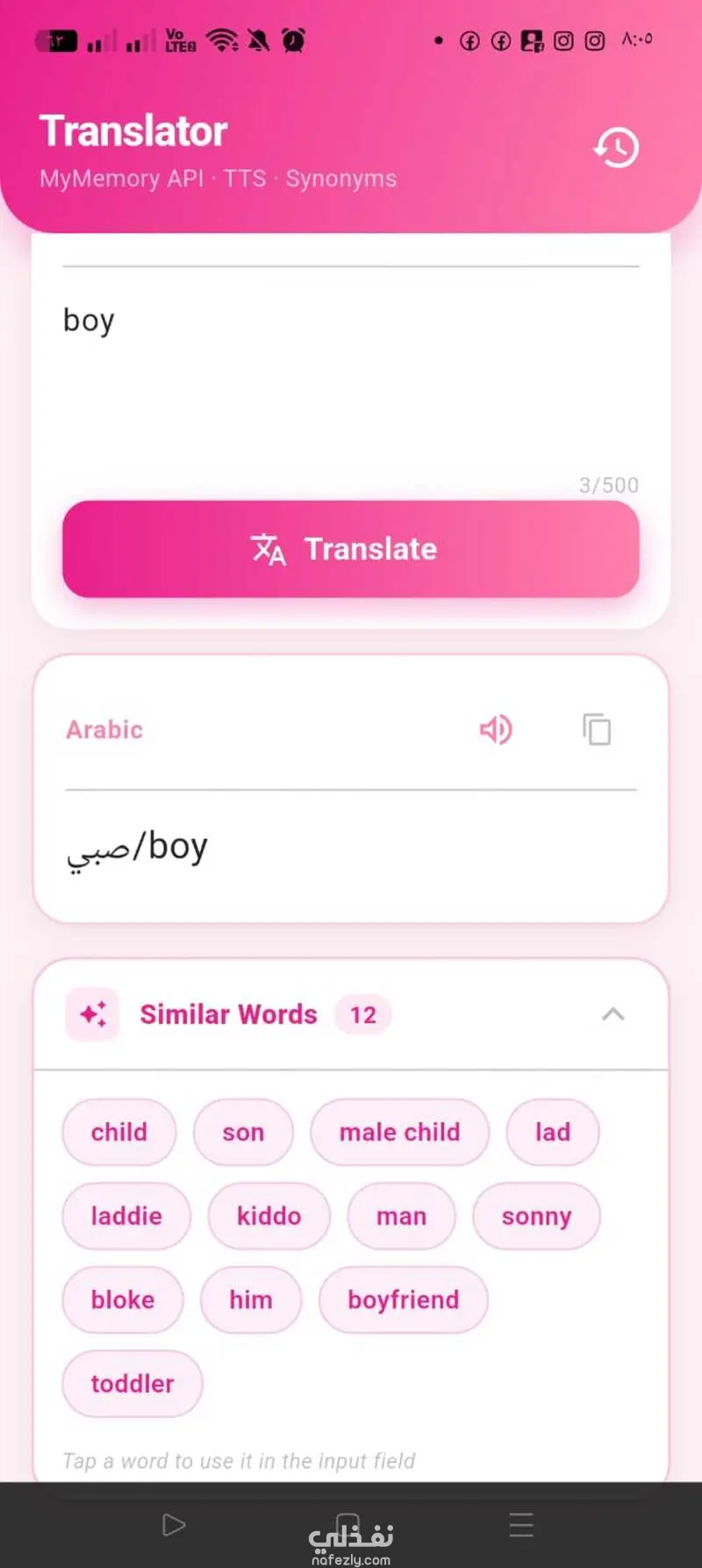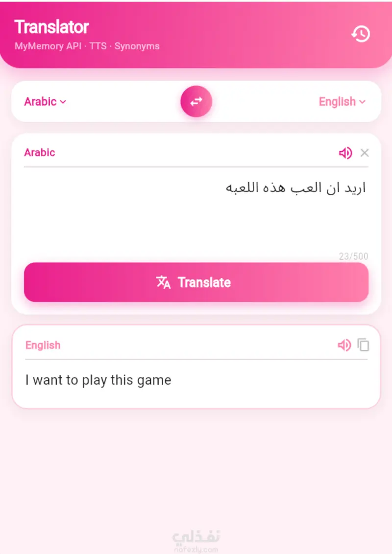 ترجمة فورية بين العربية والإنجليزية والعكس عبر API خارجي