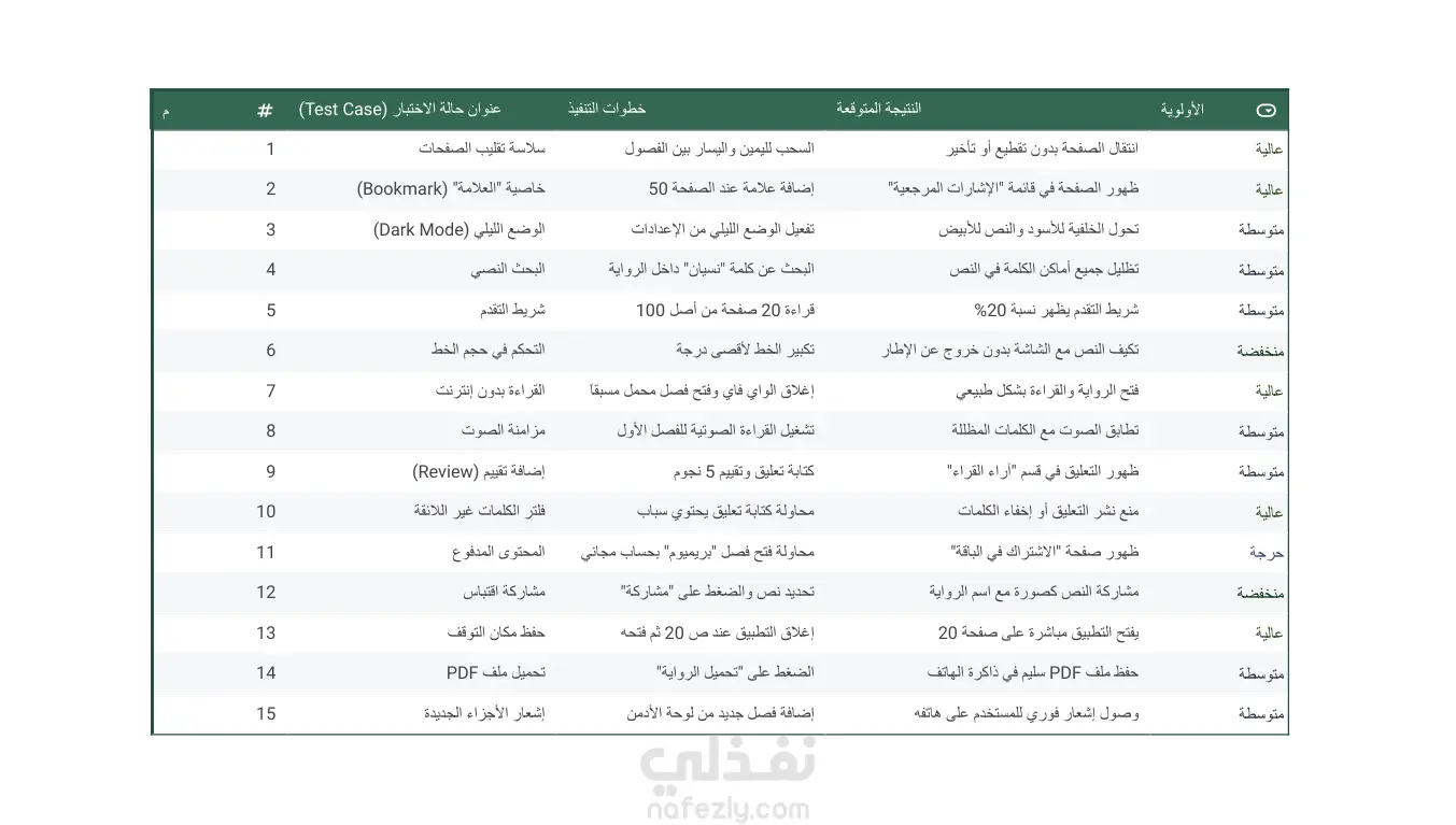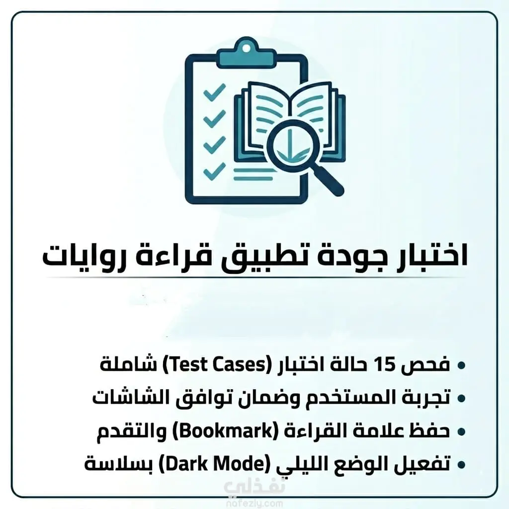 في هذا المشروع، قمت بإجراء اختبار شامل لتطبيق قراءة تفاعلي ، مع التركيز بشكل خاص على تجربة القراءة وسهولة الاستخدام. شمل العمل: إعداد 15 حالة اختبار (Test Cases) تغطي الوظائف الأساسية مثل تقليب الصفحات، وحفظ العلامات المرجعية. فحص ميزات تجربة المستخدم (UX) مثل الوضع الليلي (Dark Mode) وتكبير الخطوط. التحقق من مزامنة القراءة الصوتية مع النص والعمل في وضع عدم الاتصال (Offline). اختبار نظام الاشتراكات والمحتوى المقفل (Premium Content) لضمان حماية حقوق الملكية. تقديم تقرير نهائي يضمن سلاسة التطبيق وتوافق واجهات المستخدم مع مختلف الأجهزة."