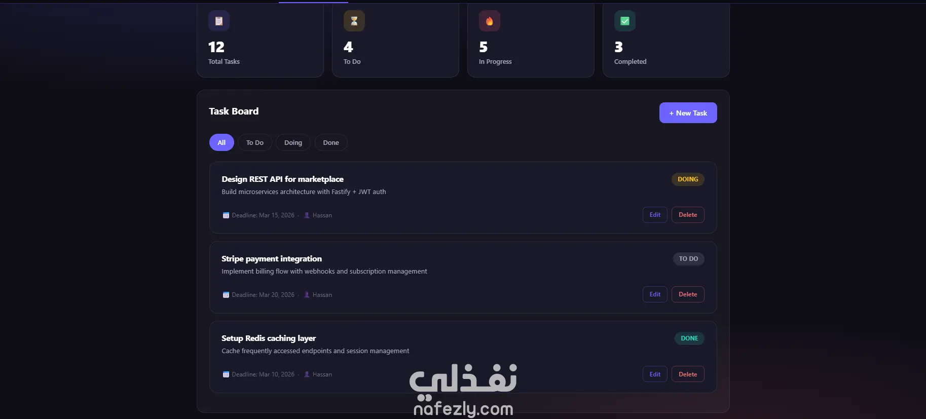 منصة ويب بسيطة ومتجاوبة تتيح للأفراد والفرق إدارة مهامهم اليومية ومتابعة سير العمل بشكل منظم وواضح. المنصة مبنية كـ Full-Stack Web Application وتعمل على الجوال والكمبيوتر دون الحاجة لأي تطبيق مستقل. يعتمد المشروع على بنية واضحة تفصل بين صلاحيات إنشاء المهام وتعديلها، مع التركيز على سهولة الاستخدام اليومي وسرعة إدخال البيانات، مما يضمن سهولة الصيانة والتطوير مستقبلاً. مميزات المنصة: - نظام تسجيل دخول كامل مع تفعيل الحساب عبر البريد الإلكتروني - حماية الحسابات غير المفعلة بحذف تلقائي بعد 24 ساعة - إدارة كاملة للمهام (إضافة، تعديل، حذف) - تعيين المهام لأعضاء الفريق عبر البريد الإلكتروني - صلاحيات واضحة — صاحب المهمة فقط يقدر يعدل أو يحذف - تصفية المهام حسب الحالة (To Do / Doing / Done) - Pagination للتعامل مع عدد كبير من المهام - لوحة إحصائيات توضح حالة المهام بشكل لحظي - تصميم متجاوب يعمل على مختلف أحجام الشاشات - دعم الوضعين Light و Dark Mode التقنيات المستخدمة: Node.js + Express.js MongoDB JWT Authentication Nodemailer HTML5 + CSS3 + Bootstrap 5 React.js Responsive Design