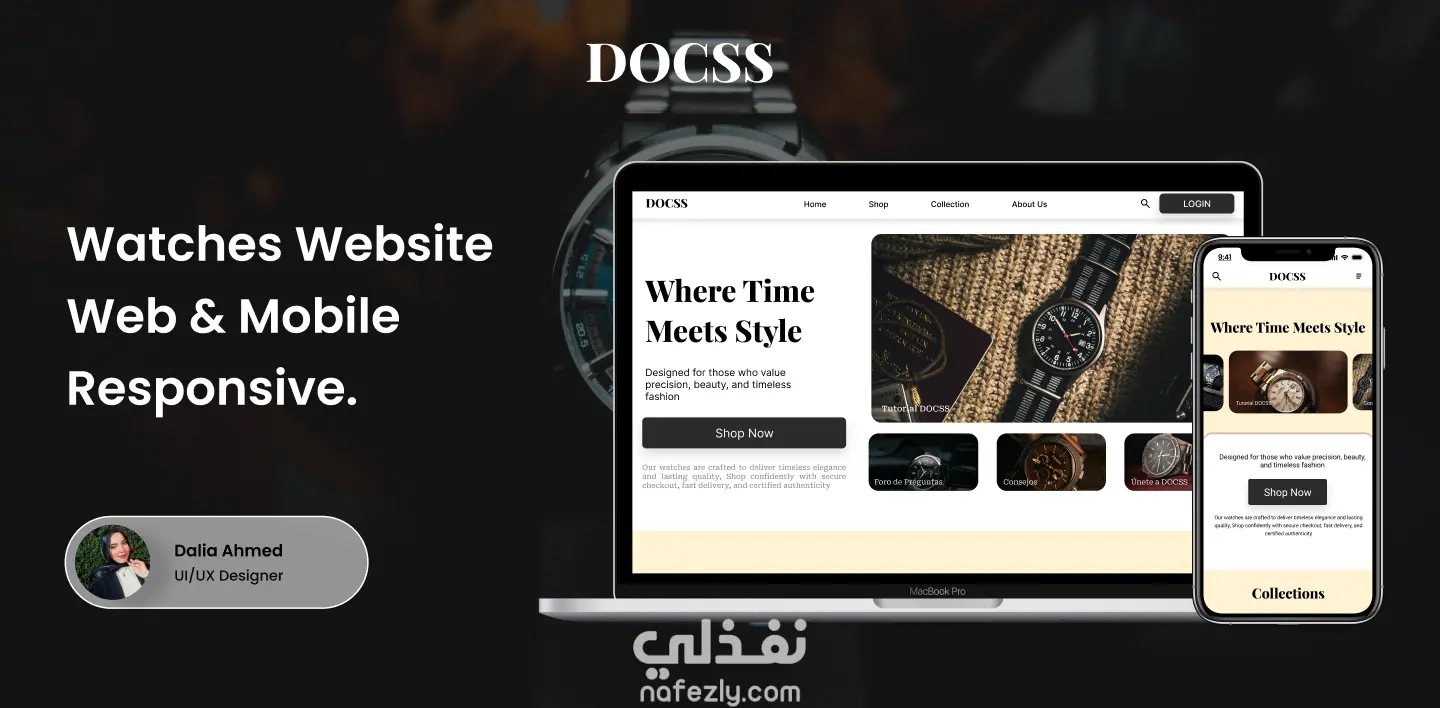 قمت بتصميم صفحة هبوط (Landing Page) لموقع متخصص في عرض الساعات باسم Docss.