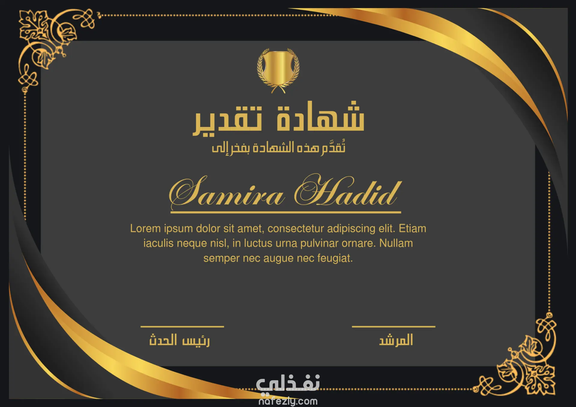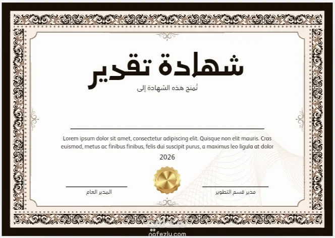 "شهادة تقدير باللغة الإنجليزية – تصميم احترافي"