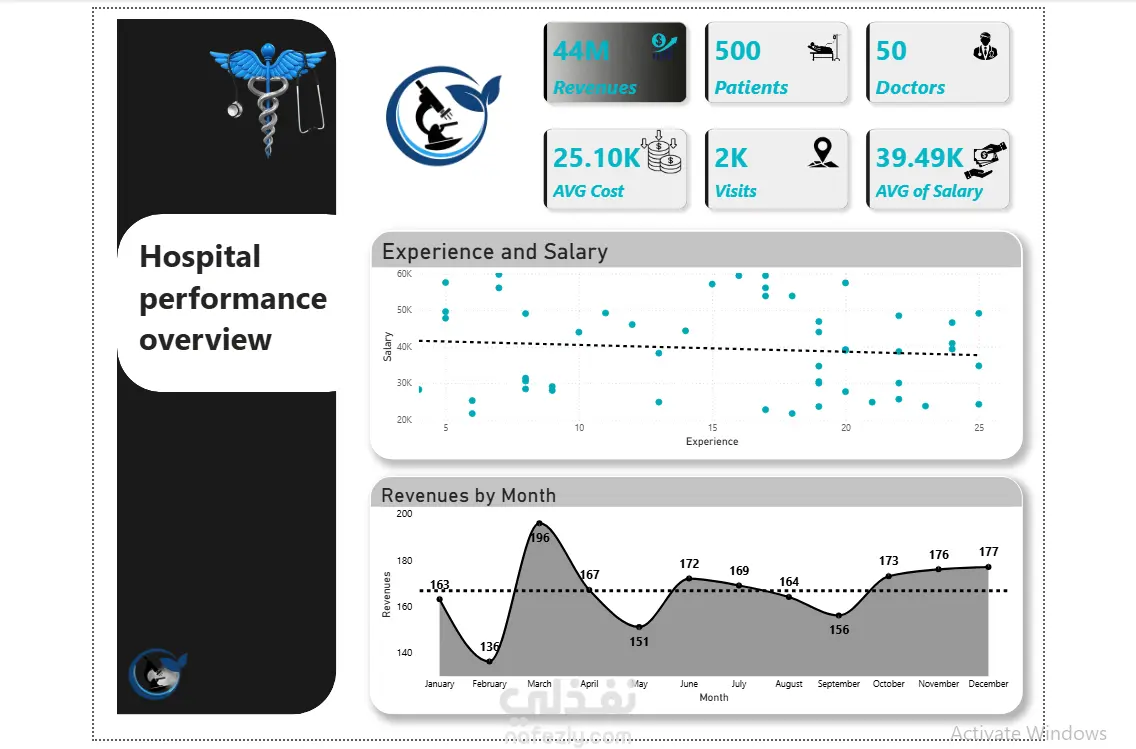 Hospital Performance Dashboard Interactive dashboard solution designed to analyze hospital financial performance, operational efficiency, and medical insights. The project includes: Financial KPIs & collection rate analysis Specialty performance tracking Diagnosis & revenue analysis Insurance distribution insights Doctor performance & salary analysis Monthly revenue trends This solution helps healthcare management improve cash flow, optimize resource allocation, and enhance strategic decision-making.