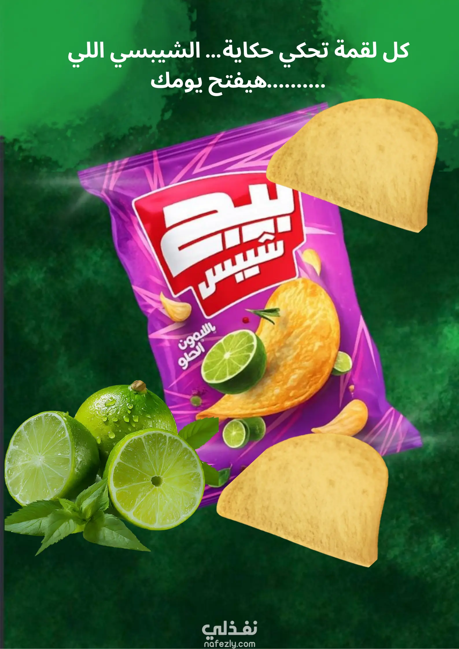 تصميم إعلان جذاب لمنتج شيبسي للسوشيال ميديا