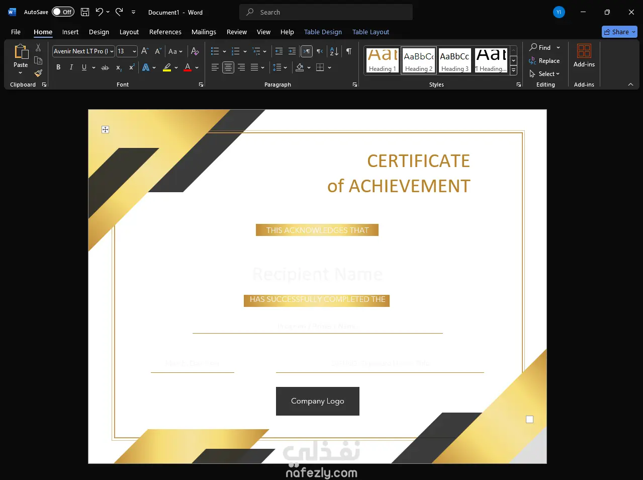 تصميم شهادة تقدير