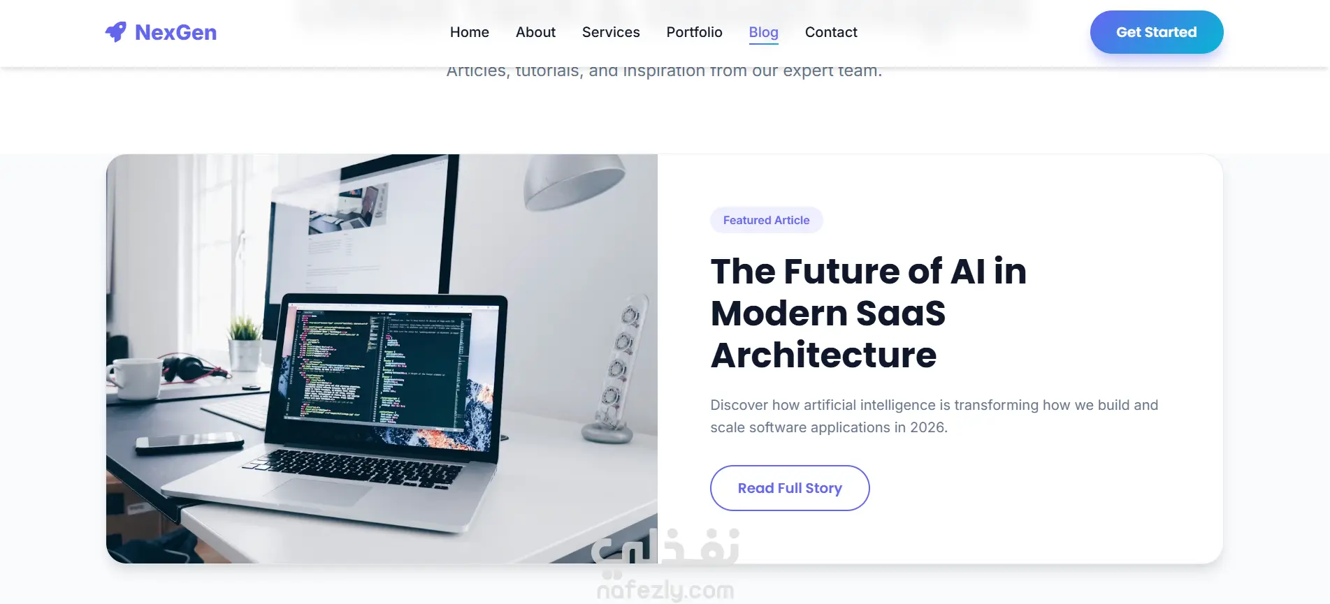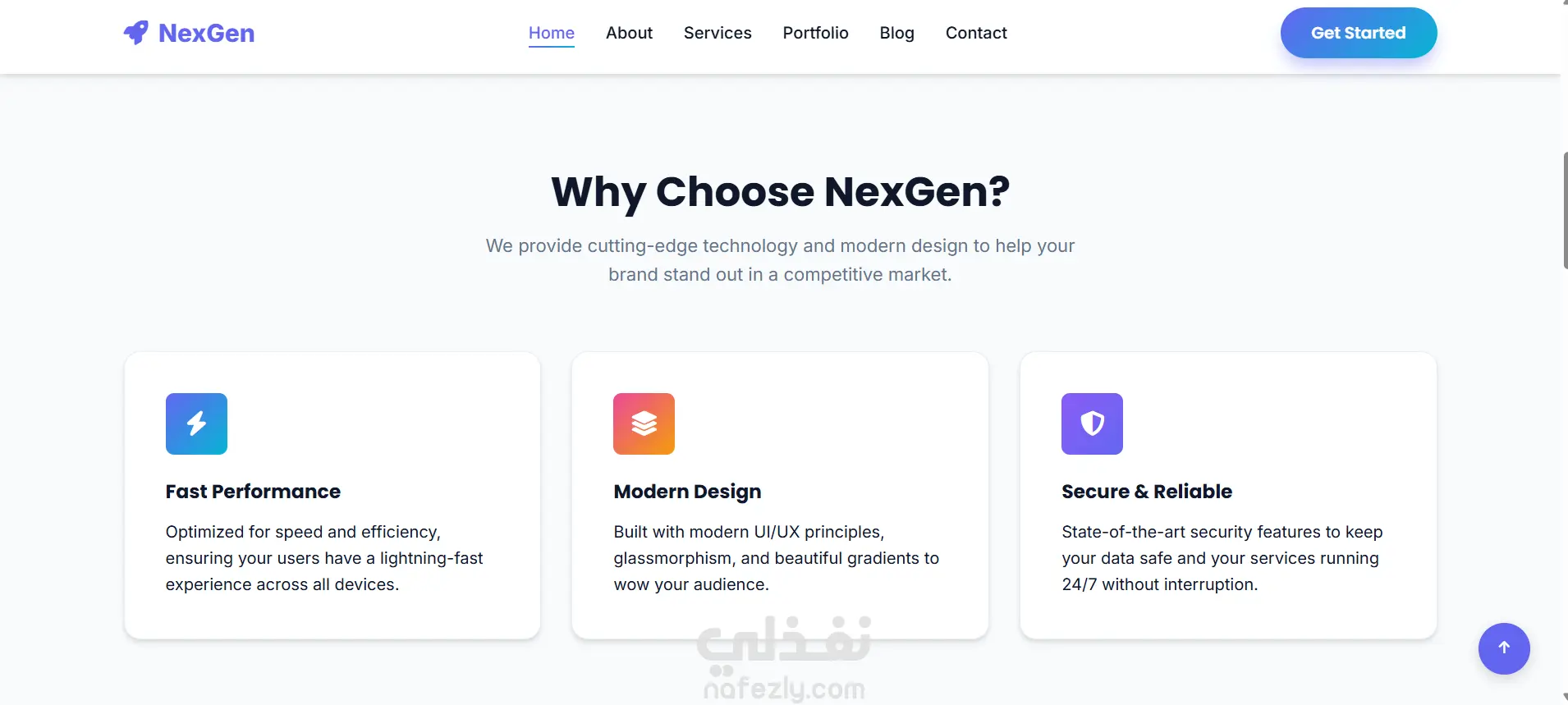 NexGen هو حل شامل لتطوير الأعمال SaaS، يجمع بين تصميم جميل، ميزات قوية، وتجربة مستخدم سلسة. القسم الرئيسي: Accelerate Your Business with NexGen – الحل الأمثل لتوسيع أعمالك مع تصميم عصري وأداء عالي وسهولة استخدام. خدماتنا: Fast Performance: أداء سريع وفعال لجميع الأجهزة. Modern Design: تصميم حديث باستخدام مبادئ UI/UX، glassmorphism، وتدرجات لونية جذابة. Secure & Reliable: أمان عالي وتشغيل متواصل 24/7. أحدث المشاريع: Cloud Platform UI / Cloud Analytics Dashboard / Enterprise SaaS Solution Mobile App UI / FinTech Mobile App / Banking & Finance Technology Web Design / E-Commerce Rebrand / Creative Design & Strategy آراء العملاء: "NexGen transformed our workflow. زيادة الإنتاجية بنسبة 40%." – John Doe, CEO, TechStream "أفضل استثمار لنا هذا العام. فريق محترف ومتجاوب." – Sarah Smith, Founder, Brightly "تصميم مذهل ووظائف قوية. أنصح به لأي شركة ناشئة." – Mike Ross, CTO, InnovateX دعوة للعمل: Ready to Start Your Journey? انضم إلى أكثر من 500 شركة تثق بـ NexGen. Contact Us Now حقوق الملكية: © 2026 NexGen Digital Solutions. جميع الحقوق محفوظة. تصميم حديث ومتوافق مع المعايير العالمية لتطوير الويب.