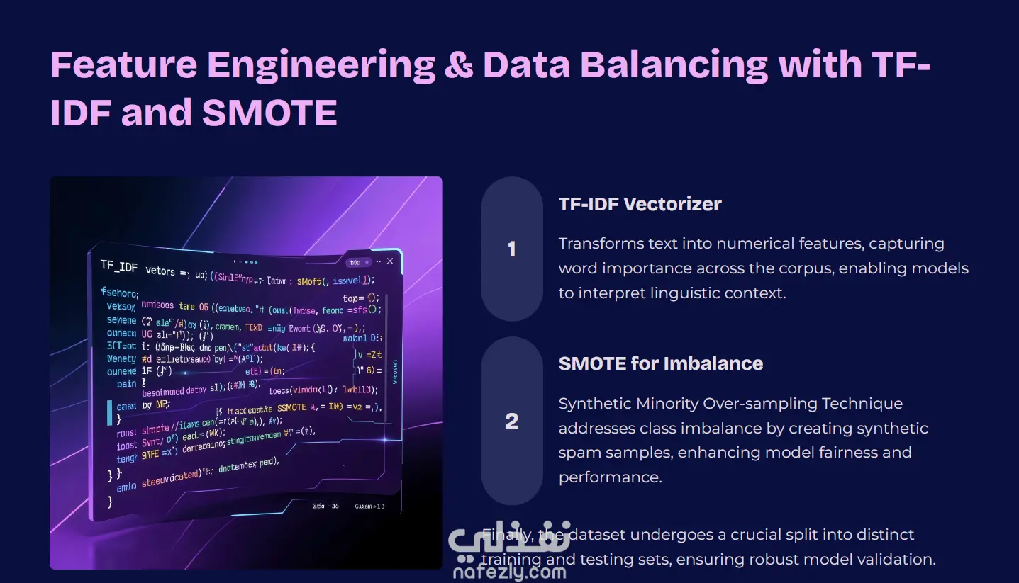 تم تدريب نموذج تصنيف باستخدام مكتبة Scikit-learn للتعرف على الرسائل المزعجة بدقة عالية.