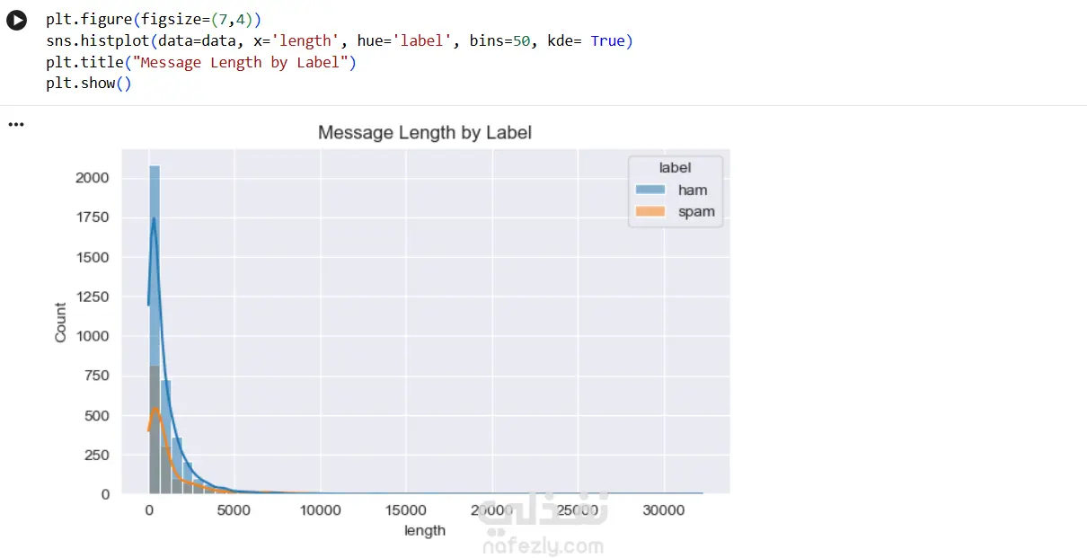 توزيع الرسائل بين Spam و Ham