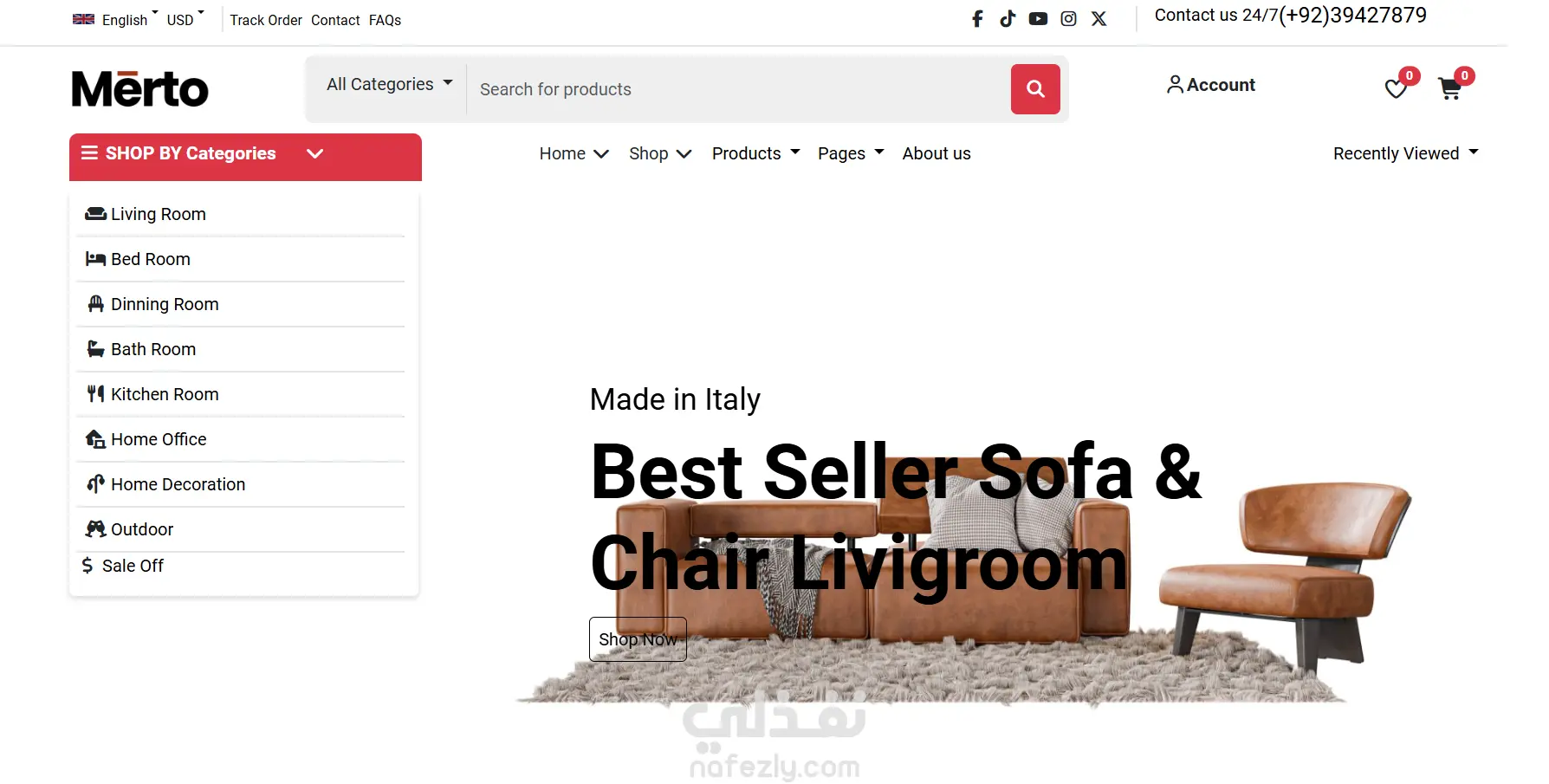 صممت Merto Furniture كمشروع تدريبي. كان التركيز على إنشاء موقع حديث وأنيق لعلامة تجارية للأثاث، مع إبراز تصميمات نظيفة ومنظمة، وتنقل سهل للمستخدم، وتصميم متجاوب يعمل بسلاسة على جميع الأجهزة.