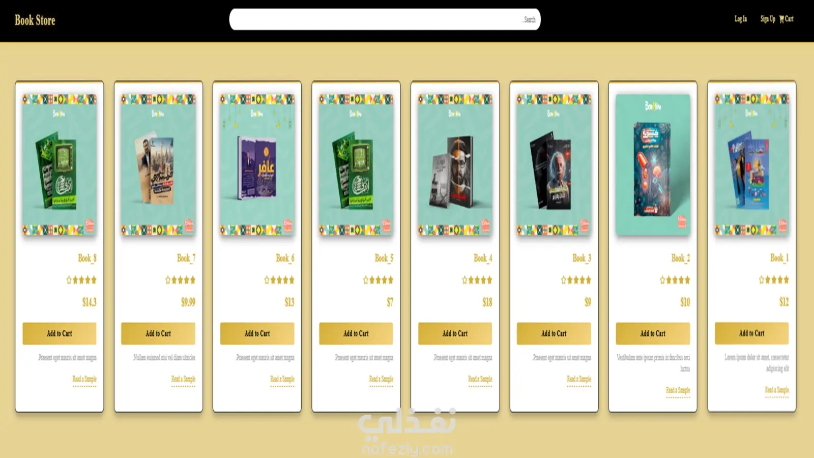 قمت بتصميم وتطوير واجهة مستخدم لمتجر كتب إلكتروني (Book Store) باستخدام تقنيات HTML5 و CSS3. المشروع يتضمن عدة صفحات أساسية مصممة بعناية لضمان تجربة مستخدم سلسة