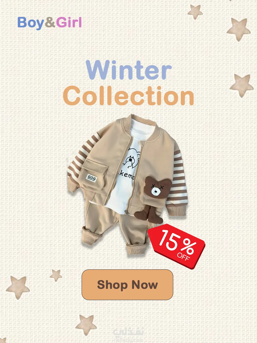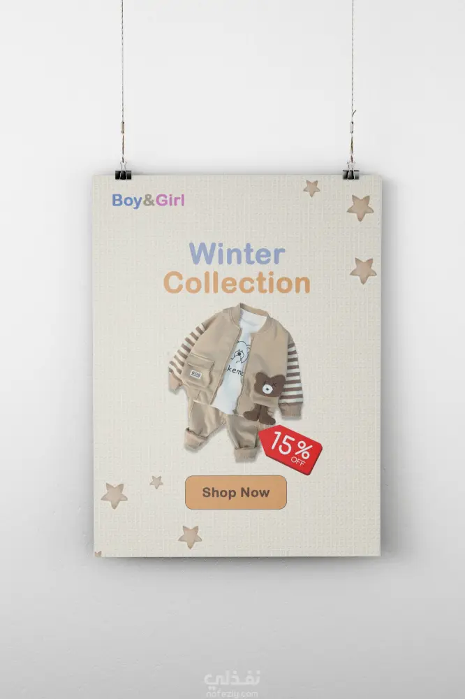 تصميم اعلان سوشيال ميديا مع تصميم موكاب لتطبيق مستلزمات اطفال Boy&Girl