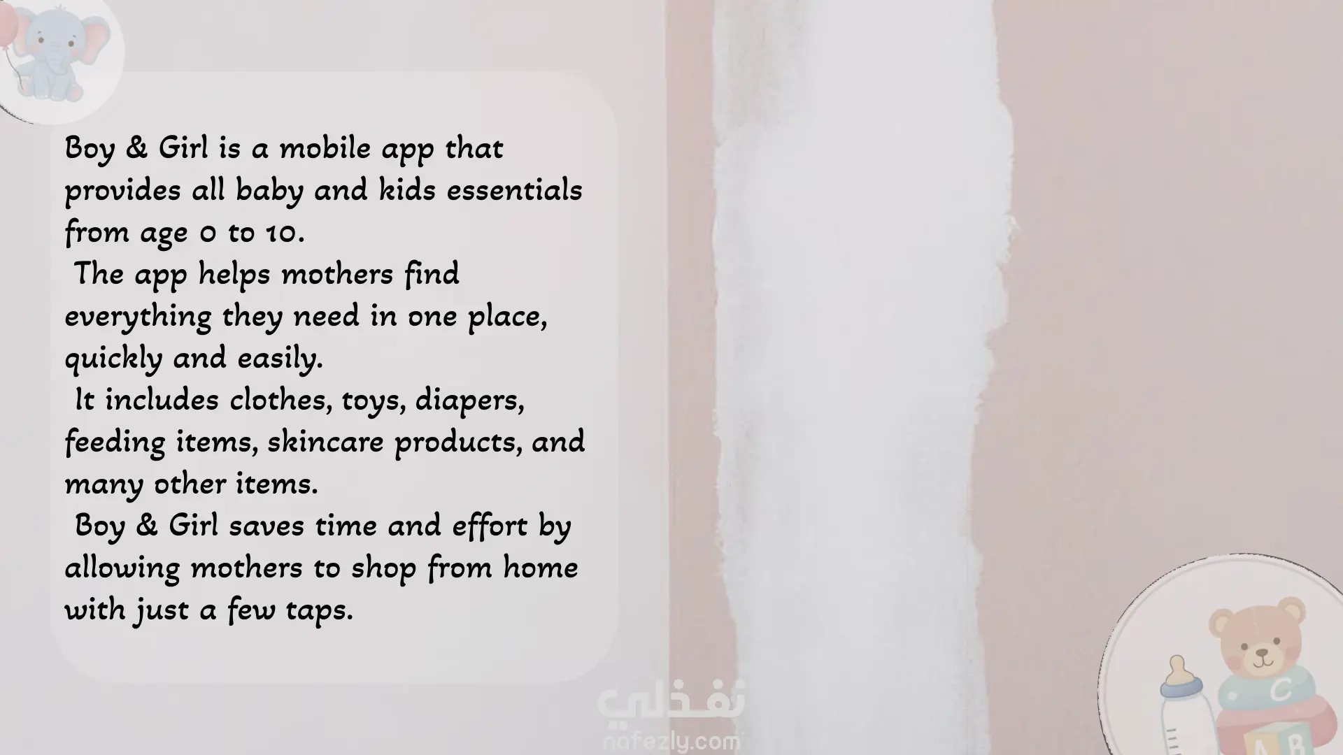 تجهيز تجربة مستخدم كامله لتطبيق مستلزمات للاطفال