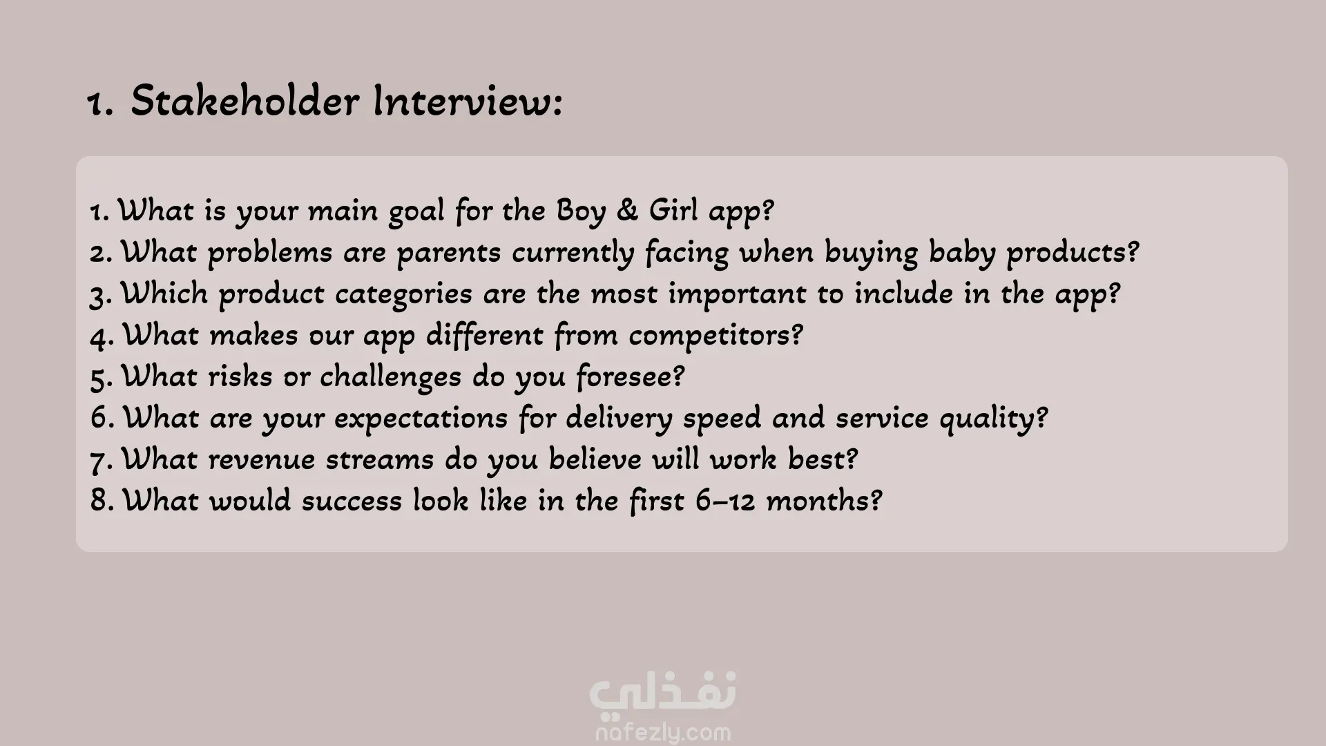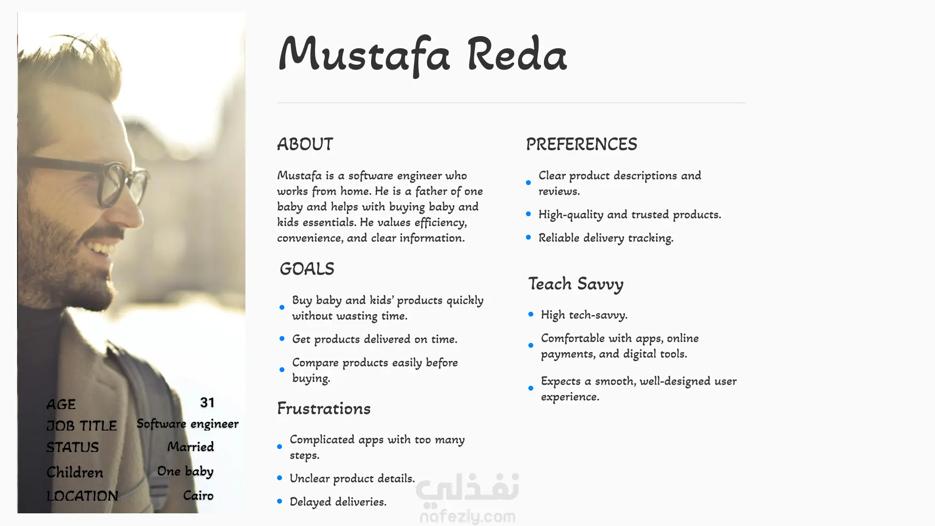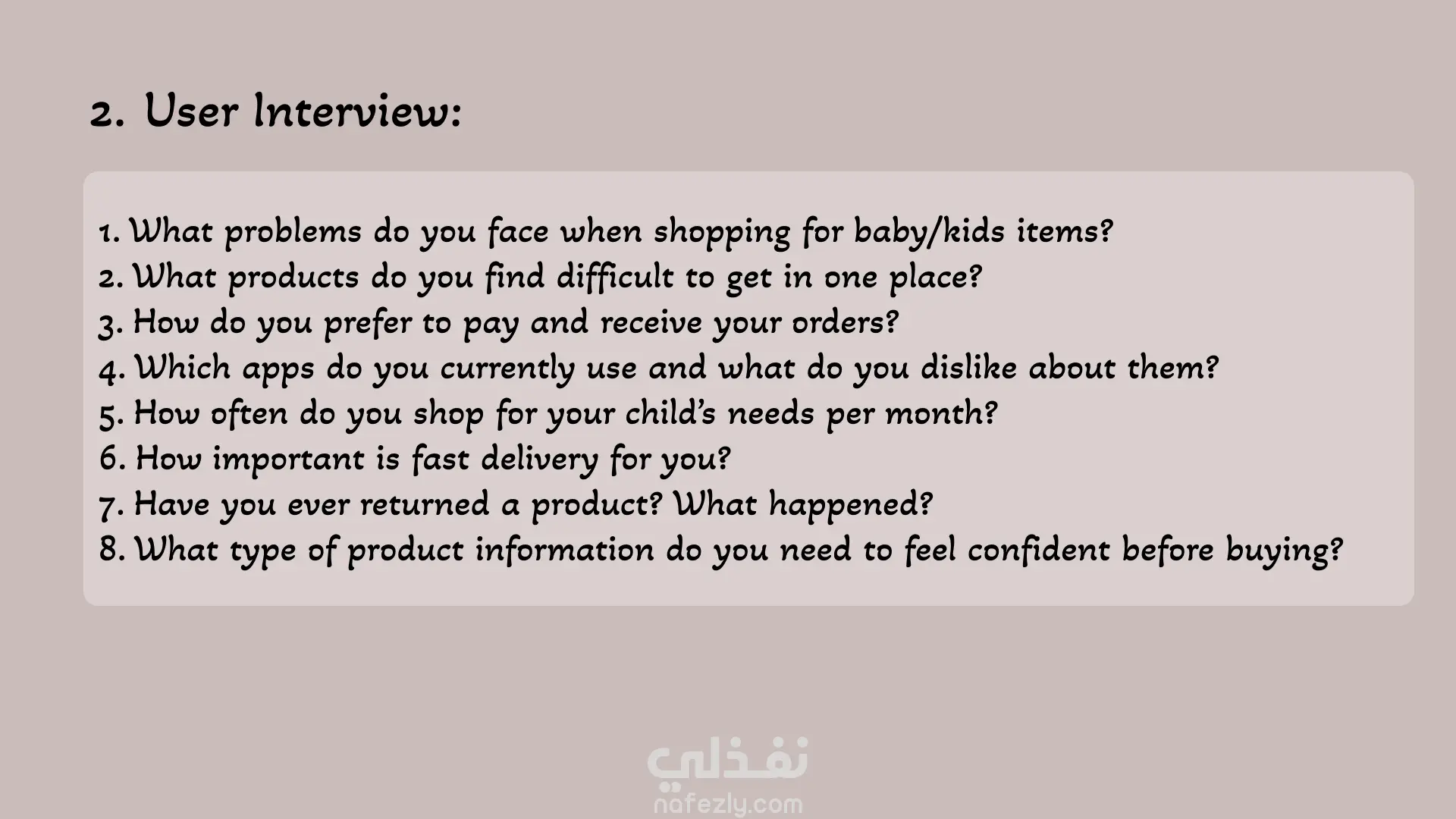 تجهيز UX Case Study كامله لتطبيق مستلزمات للاطفال (Boy&Girl) من حيث (دراسة السوق - دراسة المنافسين - عمل استطلاع رأي - تجهيز مقابله مع المستخدمين - خريطة التعاطف - شخصية المستخدم (Persona) - خريطة تدفق)