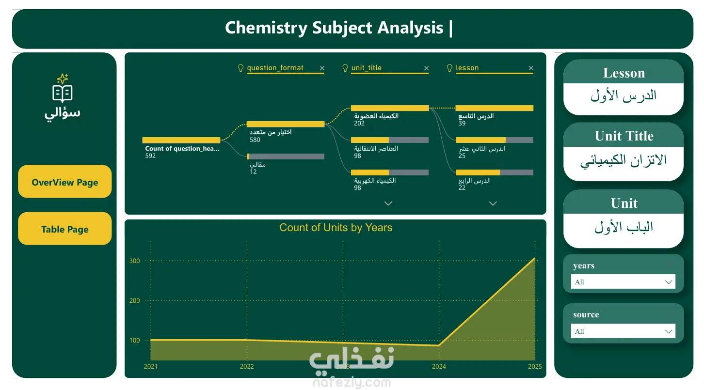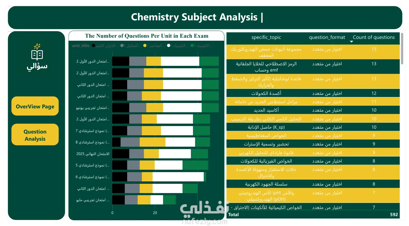 تحليل شامل لمناهج واختبارات الكيمياء وتصميم واجهة تفاعلية - Power BI