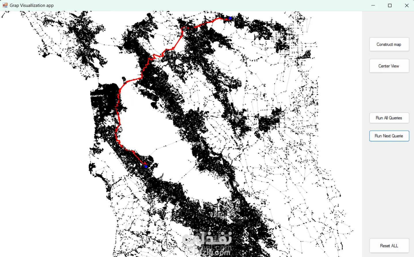 هذا المشروع هو تطبيق سطح مكتب مطور باستخدام لغة C# يتيح عرض الرسوم البيانية (Graphs) وتنفيذ خوارزمية دايكسترا لحساب أقصر مسار بشكل مرئي وتفاعلي. يمكن للمستخدم تحميل رسم بياني، تنفيذ استعلام واحد أو عدة استعلامات متتابعة، ومشاهدة كيفية استكشاف العقد وتحديث المسافات خطوة بخطوة. يتم تلوين العقد والحواف ديناميكيًا لعرض عملية الانتشار وأيضًا إبراز أقصر مسار نهائي. يتضمن المشروع: بناء هيكل بيانات مخصص لتمثيل الرسم البياني تنفيذ خوارزمية دايكسترا مع الإيقاف المبكر فلترة العقد داخل نطاق معين (Radius-based filtering) عرض مرئي لحركة الخوارزمية وتغير الألوان إبراز المسار النهائي بألوان مميزة تنفيذ متتابع للاستعلامات من ملف واجهة رسومية باستخدام Windows Forms