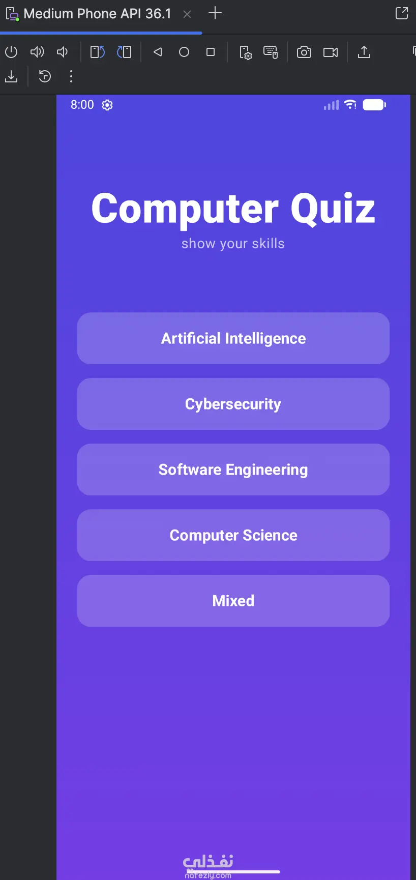 تحتوي على عدة أقسام معرفية مثل الذكاء الاصطناعي، الأمن السيبراني، هندسة البرمجيات، وعلوم الحاسوب بالإضافة إلى قسم أسئلة متنوعة.