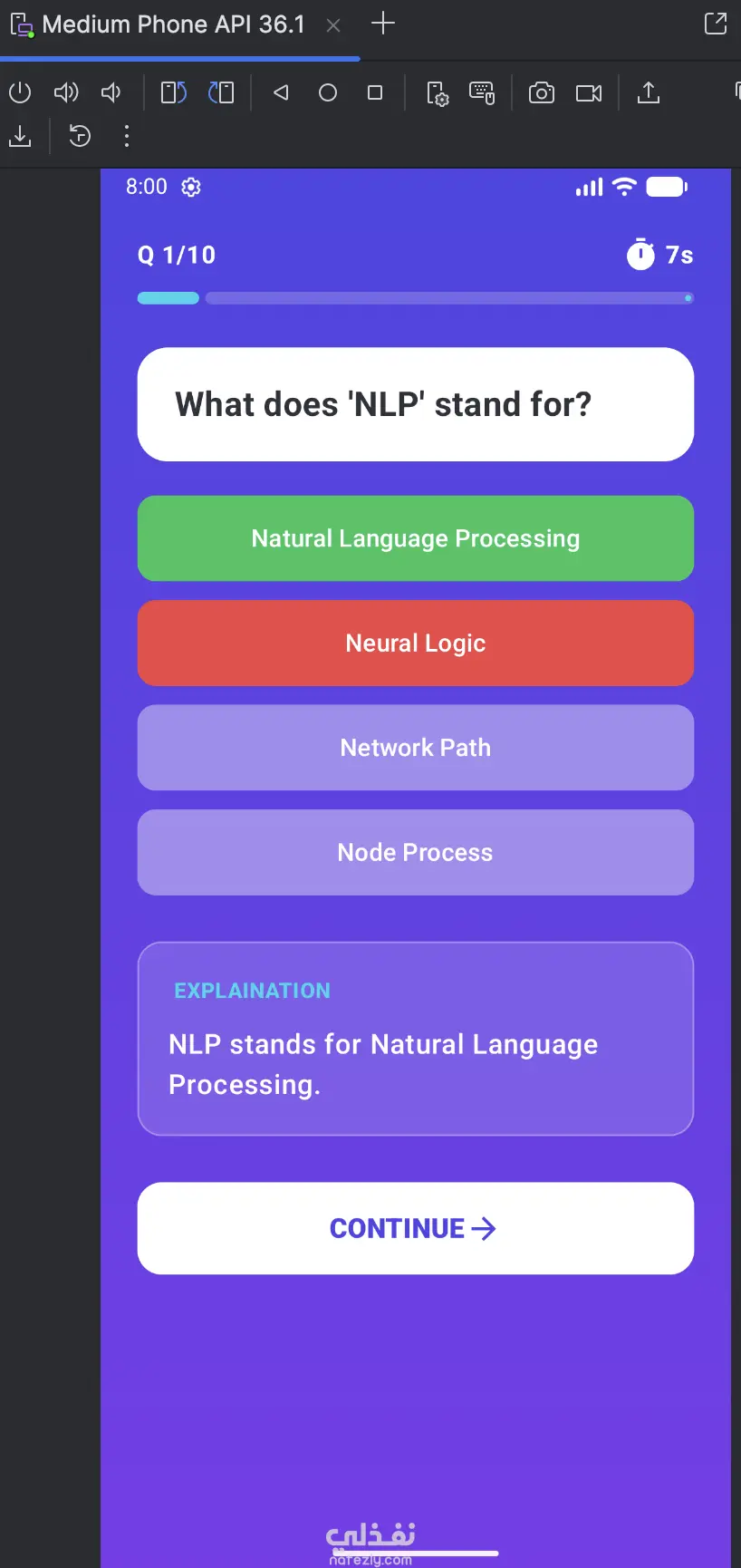 بعد كل إجابة، يحصل المستخدم على شرح مبسط للإجابة الصحيحة لمساعدته على التعلم وليس فقط الاختبار.