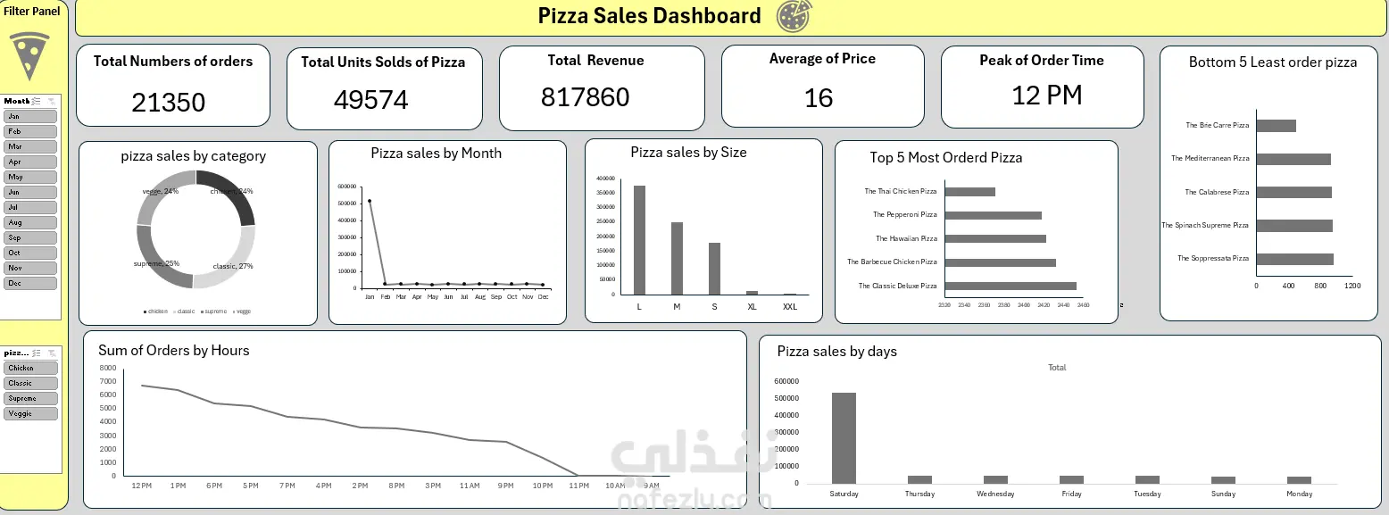 تحليل مبيعات البيتزا يهدف إلى تقييم الأداء البيعي لكل نوع من البيتزا من خلال حساب إجمالي المبيعات والأرباح. يشمل المشروع تحديد أنواع البيتزا الأكثر طلبًا والأكثر ربحية، بالإضافة إلى تحليل أوقات الطلب الأكثر شيوعًا والفئات الأكثر شراءً لتسليط الضوء على الاتجاهات اليومية والشهرية. تم استخدام أدوات التحليل البياني لإنشاء لوحات متابعة وتقارير تفاعلية تساعد فرق الإدارة على اتخاذ قرارات استراتيجية مستندة إلى البيانات وزيادة الأرباح