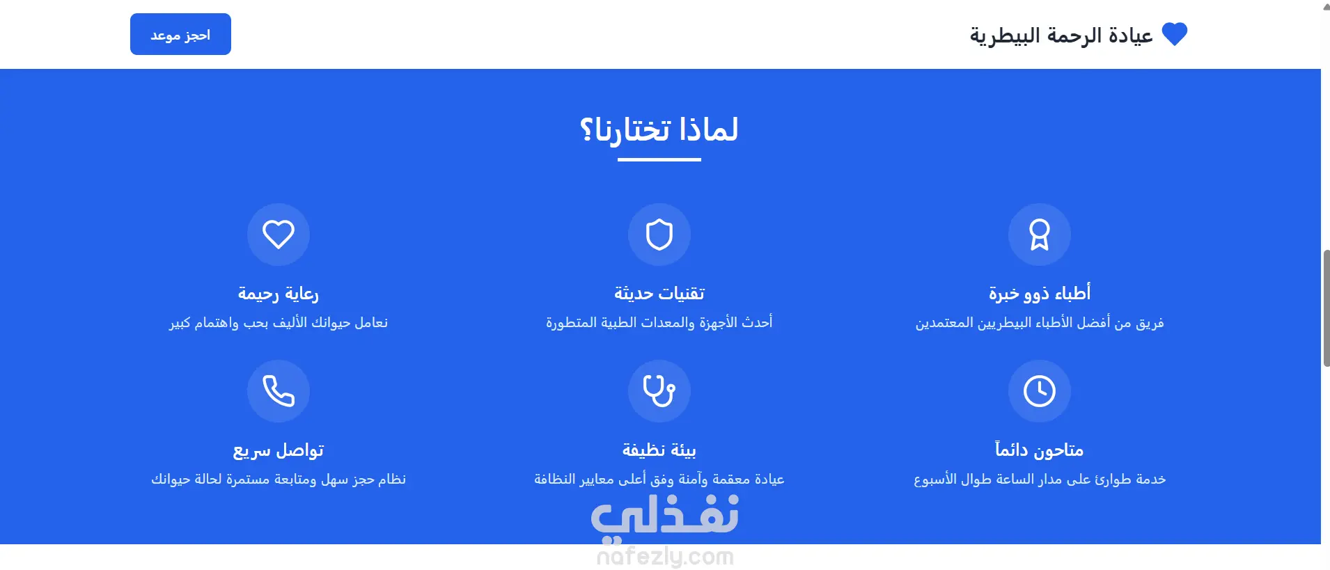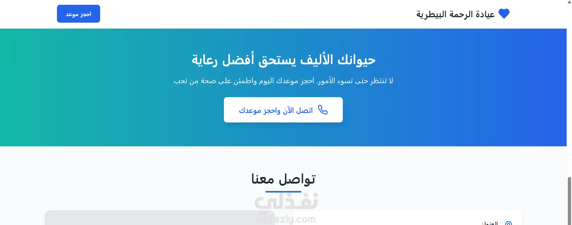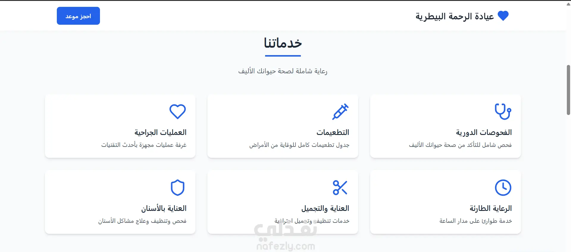 صفحة هبوط لعيادة بيطرية – تصميم عربي احترافي