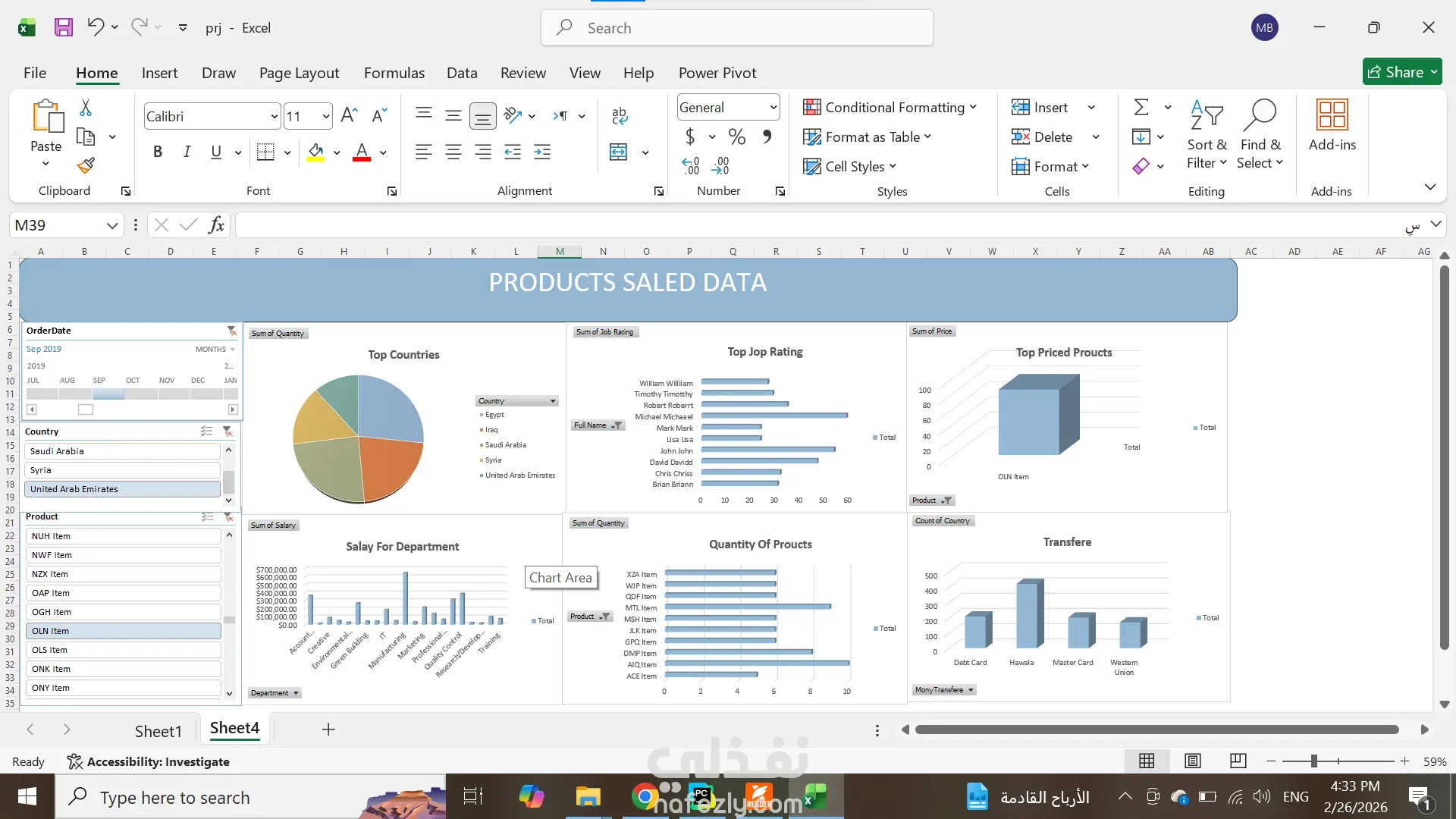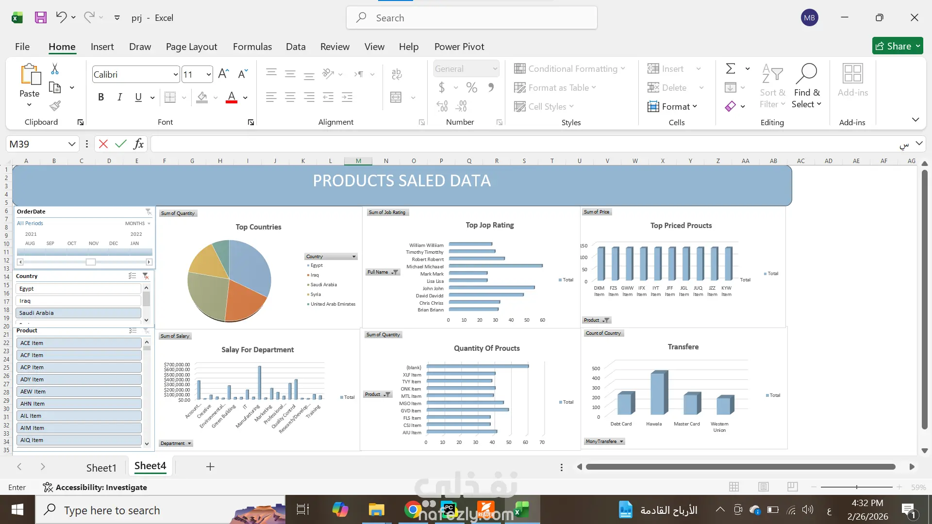 لديك بيانات ولا تعرف كيف تستفيد منها؟ اقوم بتحويل الأرقام إلى قرارات ذكية سأقوم بتحليل بياناتك وتنظيفها باستخدام (Excel) وتحويلها إلى لوحات تحكم (Dashboards) تفاعلية وسهلة القراءة. تحليل وتنظيف ملف بيانات يحتوي على ما يصل إلى 300 صف (Row) أو سجل. استخراج أهم 3 مؤشرات أداء (KPIs) من البيانات. تسليم العمل بصيغة (Excel أو PDF) حسب رغبتك. دقة عالية في التعامل مع الأرقام. تنسيق الألوان بشكل مريح واحترافي. سرعة في التنفيذ والتواصل
