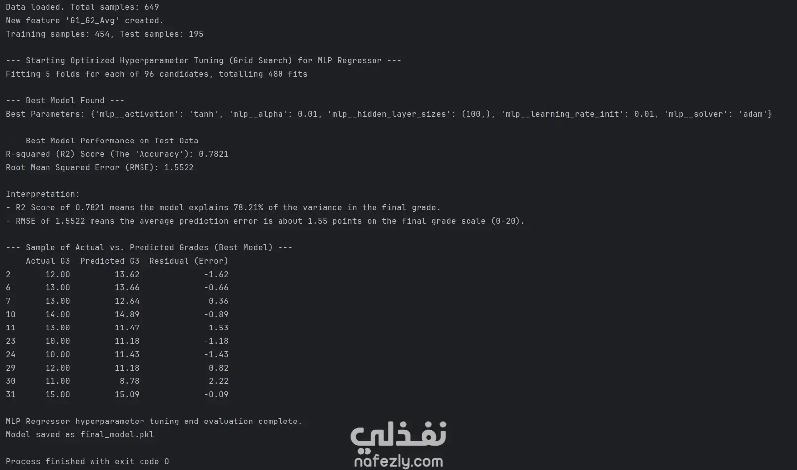 نموذج تنبؤ بالدرجات النهائية باستخدام الشبكات العصبية (MLP)