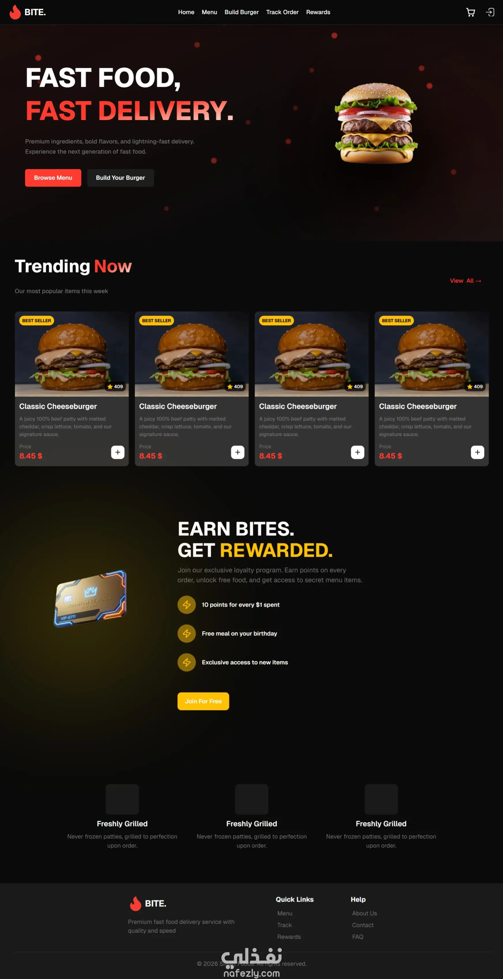 صفحه هبوط ( landing page ) لمطعم تحتوي على 5 اقسام - قسم تعريف المطعم hero section - قسم ابرز الاطباق -قسم عرض الاشياء التي تميز المطعم عن غيره - قسم لماذا تشتري من المطعم -قسم التواصل