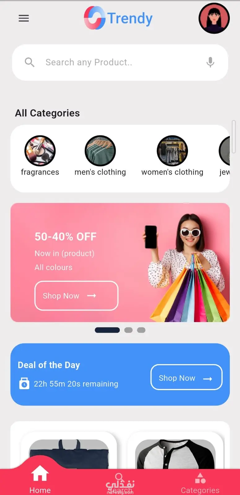 ده عباره عن mobile App with flutter استخدمت فيه للوجه الاماميه Flutter framework و استخدمة فيه لقاعدة البيانات Firebase ده تطبيق عباره عن متجر الكتروني تقضر تبحث فيه علي ايتيم تضيف للكارت و تضيف للمفضله