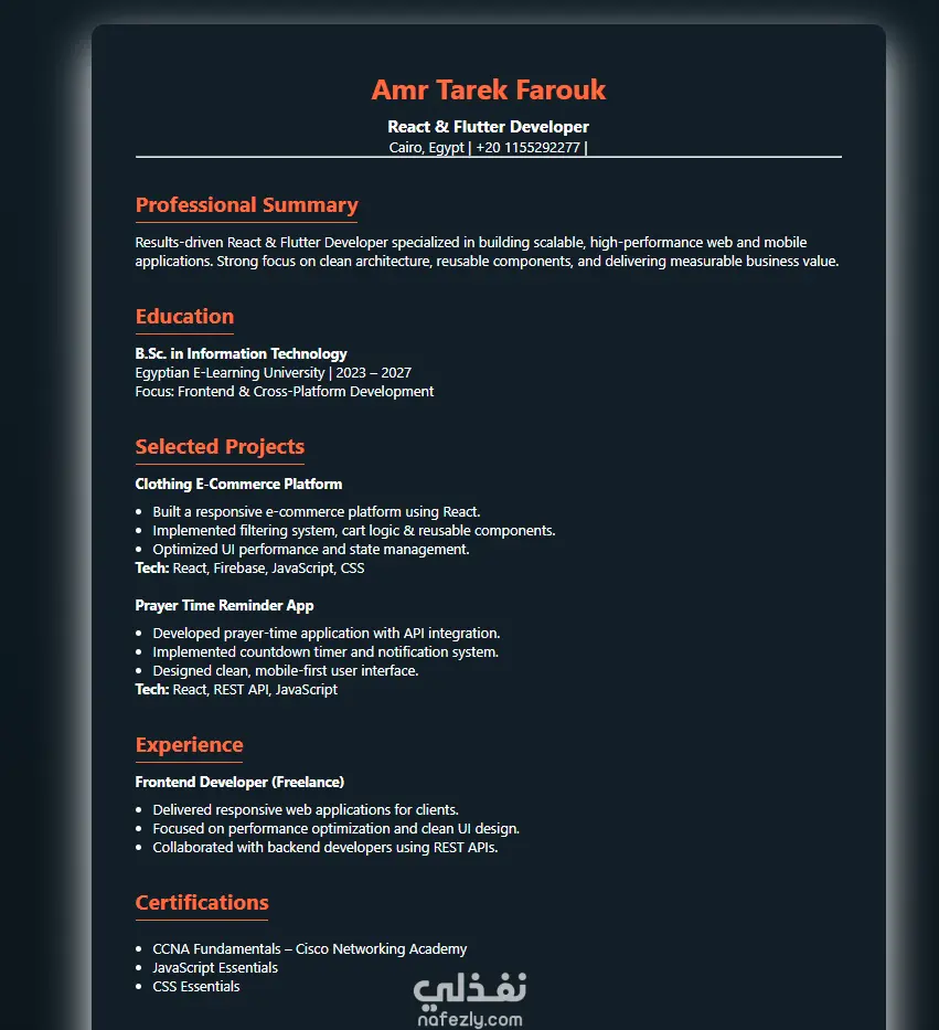 إذا كنت تبحث عن Portfolio Website احترافي يعرض أعمالك بشكل أنيق ويعكس مهاراتك الحقيقية… فأنت في المكان الصحيح.