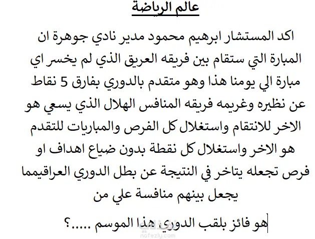 *يواصل الفريق تقديم أداء قوي ومميز هذا الموسم *سعر الدولار تأثيره على حركة الاقتصاد والأسواق * تشهد التكنولوجيا تطورًا سريعًا في العصر الحديث