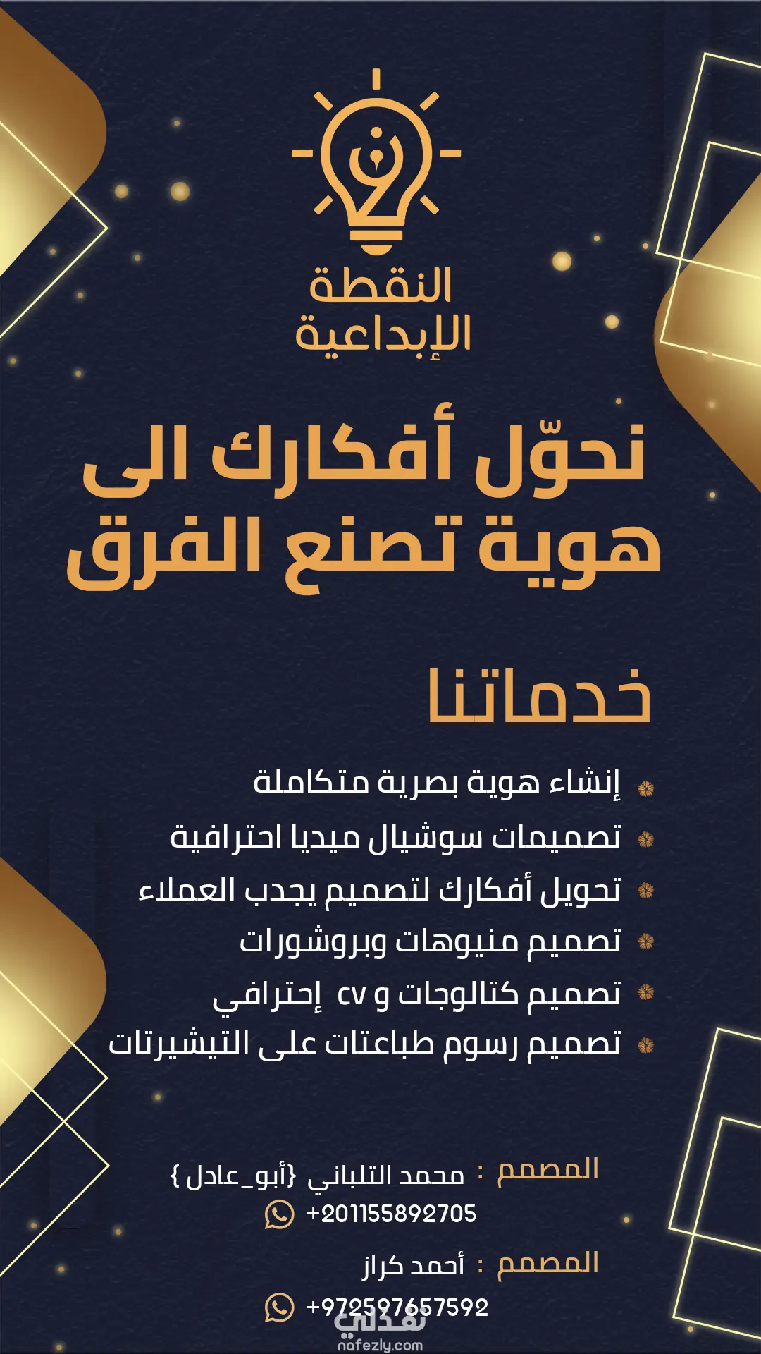 إذا كنت تبحث عن تصميم احترافي يعكس قوة علامتك التجارية ويجذب العملاء فأنا جاهز للعمل معك.