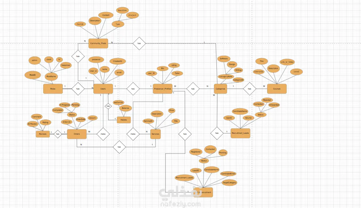 تصميم قاعده بيانات وانشاء الانتتى الاساسيه والرليشن والربط بينهم
