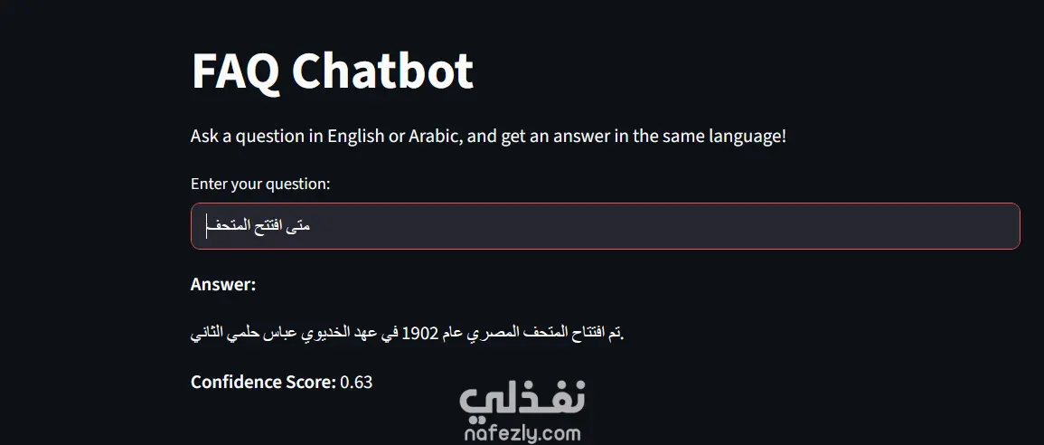 قمت بتطوير وبناء نظام ذكي للرد الآلي على الاستفسارات (FAQ System) يعتمد على تقنيات معالجة اللغات الطبيعية (NLP). النظام مصمم لمساعدة الشركات في الرد الفوري والدقيق على أسئلة العملاء من خلال استخراج الإجابات مباشرة من قواعد البيانات أو ملفات (Excel).