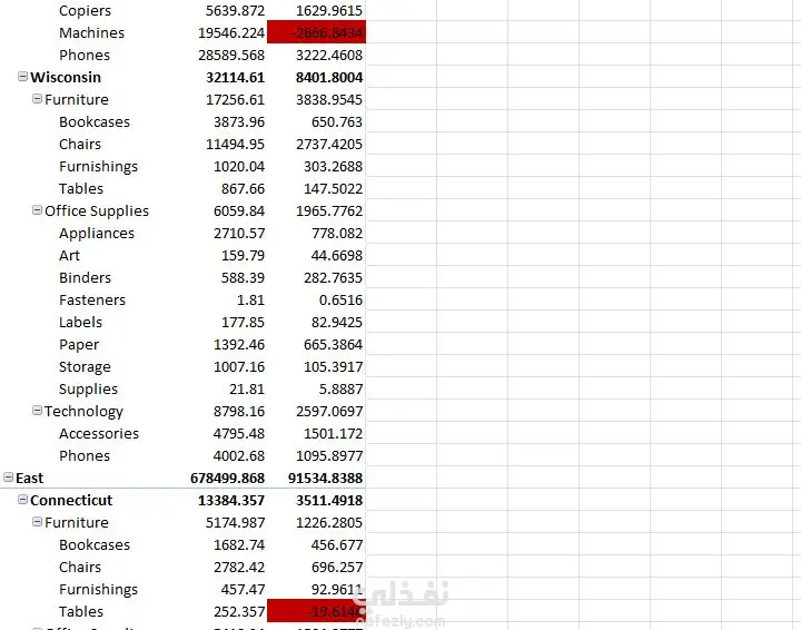 تلخيص البيانات وتحليلها بإستخدام pivot table