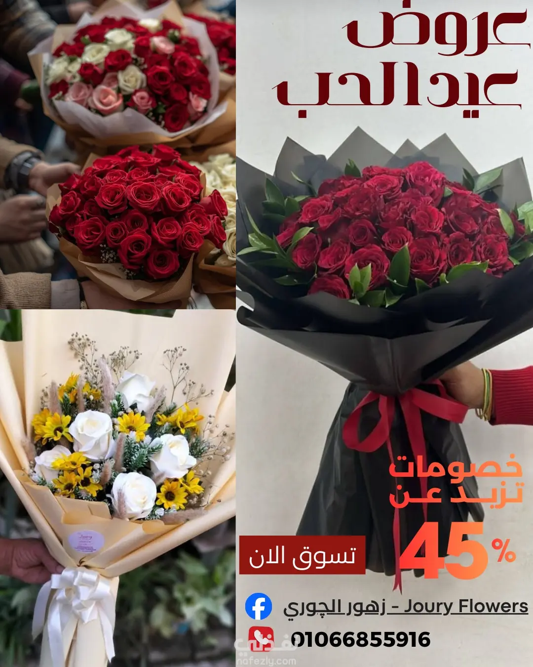 تصميم بوستات دعايا وخصومات لمحل ورد