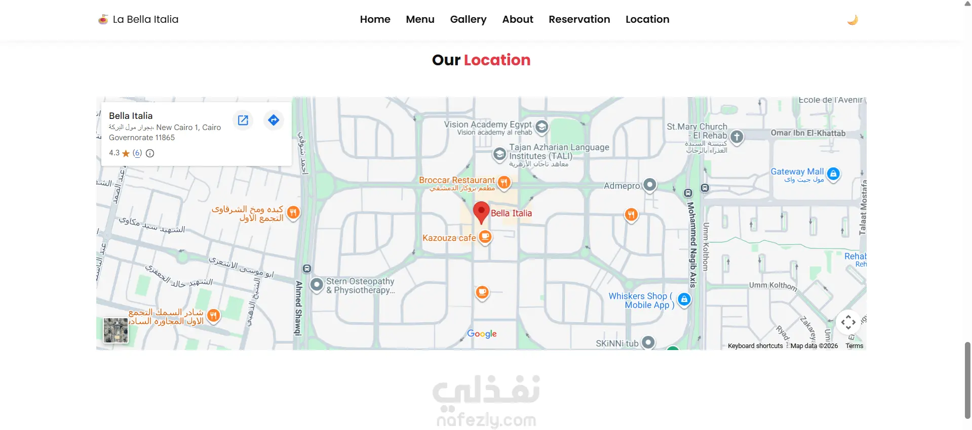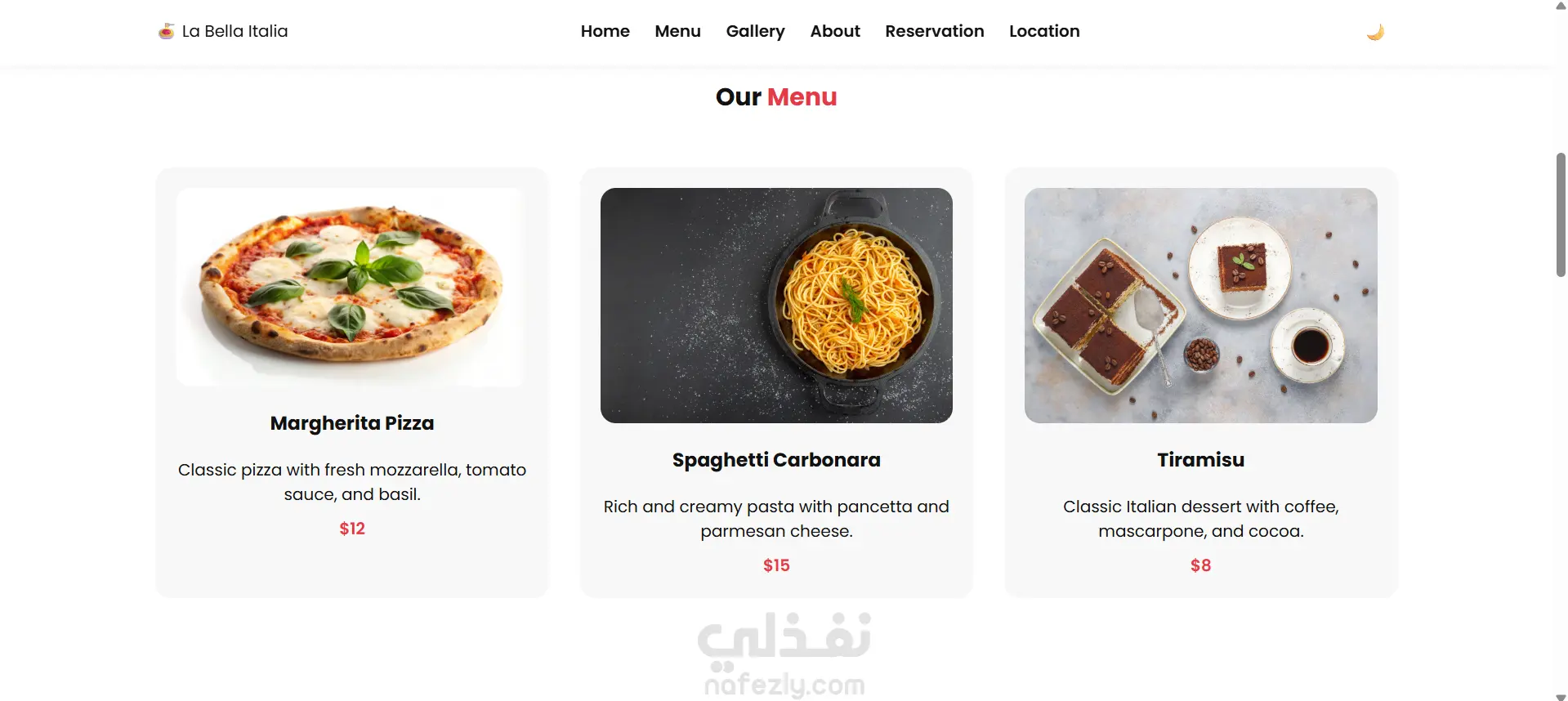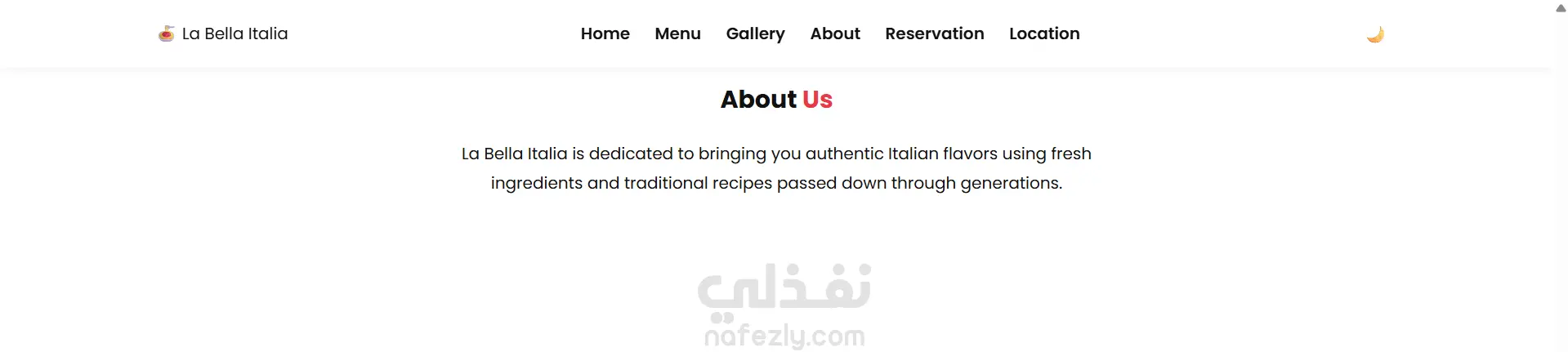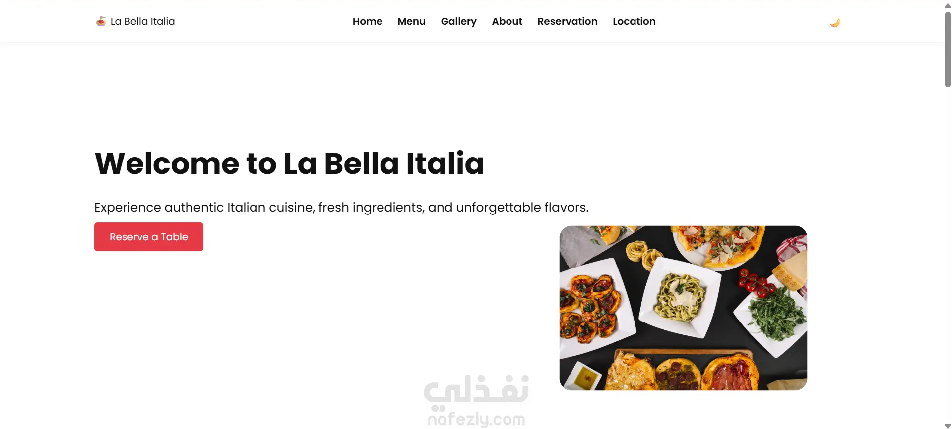 هذا الموقع مصمم لتقديم تجربة مستخدم سلسة لمطعم إيطالي متخصص في البيتزا والباستا. تم تطويره باستخدام أحدث التقنيات لضمان تصميم عصري، متجاوب، وسهل الاستخدام: HTML: لبناء هيكل صفحات الموقع وتنظيم المحتوى بطريقة واضحة. CSS: لتصميم واجهات جذابة ومتجاوبة مع جميع الأجهزة (Desktop, Tablet, Mobile). JavaScript (JS): لإضافة التفاعلية والديناميكية، مثل القوائم المتحركة وأزرار الطلب. Git & GitHub: لإدارة نسخ المشروع وتتبع التعديلات بشكل احترافي. Vercel: لنشر الموقع مباشرة على الإنترنت وضمان تجربة مستخدم سريعة ومستقرة. الموقع متجاوب بالكامل، محسّن للأداء، ويوفر تجربة مستخدم جذابة وسهلة التصفح، مع إمكانية التوسع أو تعديل التصميم مستقبلاً.