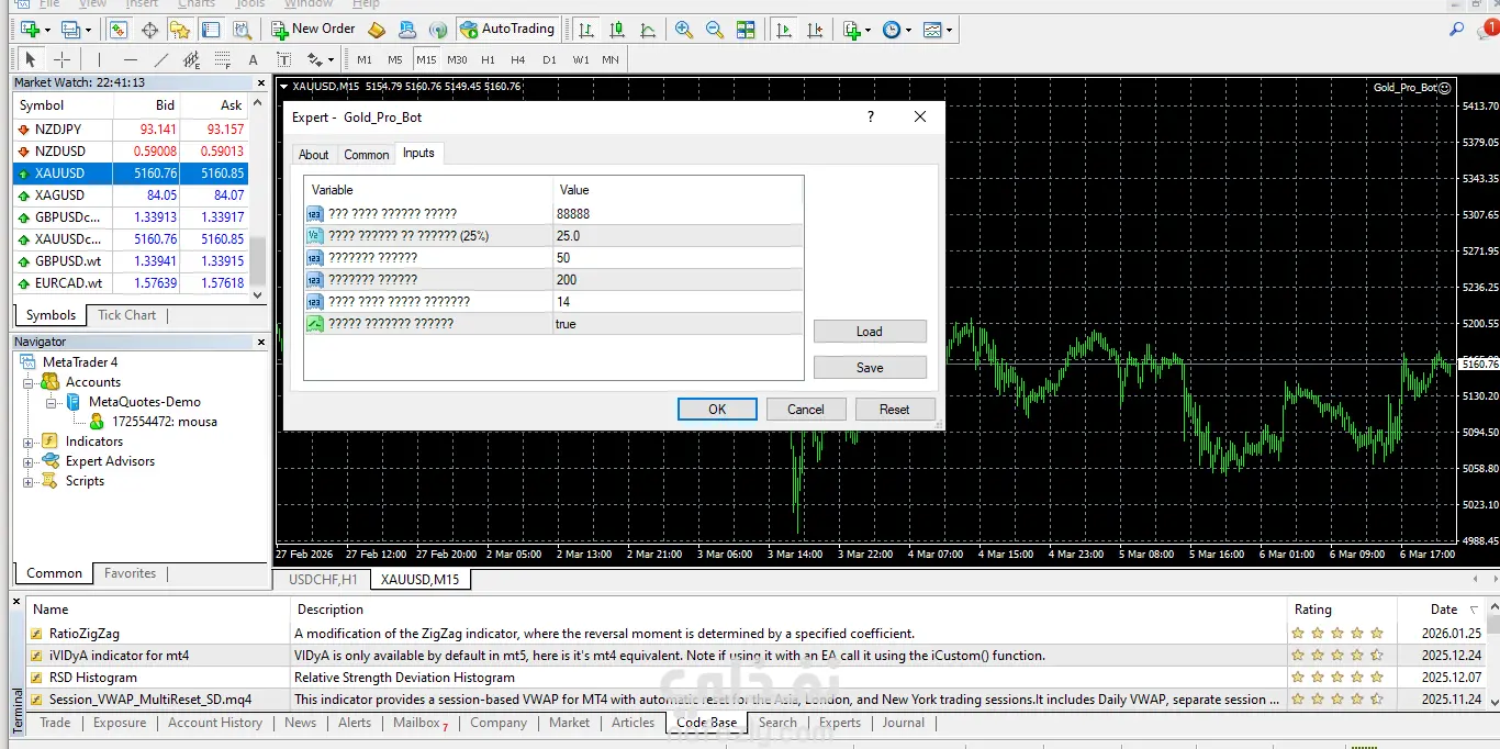 بوت تداول اوتوماتيكياً يعمل يعمل بلغة MQL4 ويعمل على منصة Mt4 يقوم بالتحليل العميق وفتح و اغلاق الصفقات اوتوماتيكيا وتجنب الاخبار التى قد تسبب العديد من الخسائر
