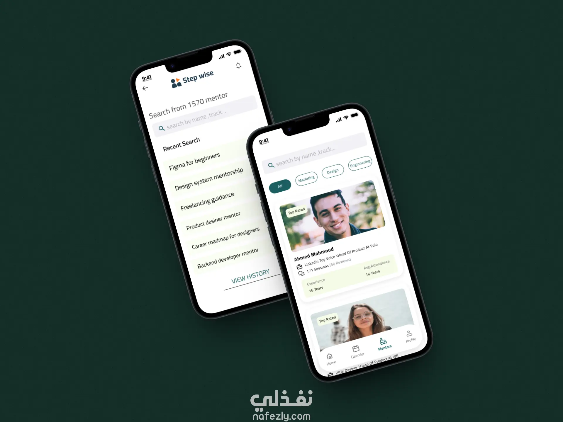 قمت بتصميم واجهات تطبيق Step Wise وهو تطبيق يهدف إلى ربط المستخدمين بال (Mentors) لمساعدتهم على التطور المهني واكتساب المهارات خطوة بخطوة.