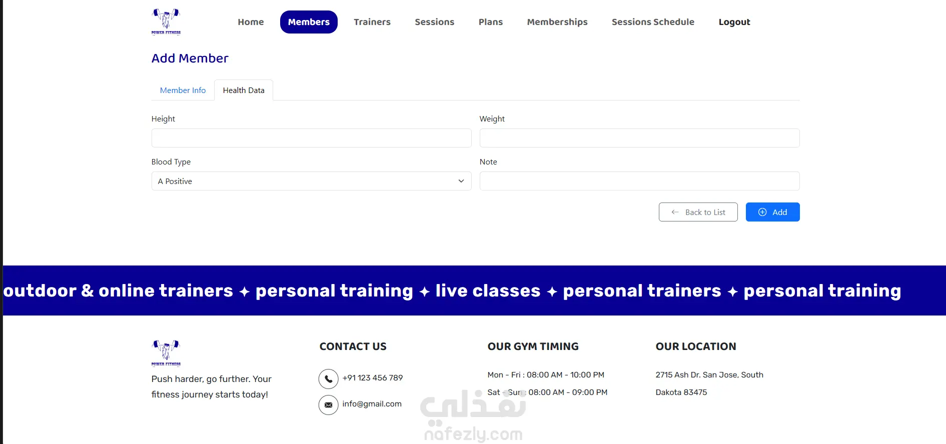 التحكم الكامل في المحتوى: يمكنك تعديل أقسام الخدمات، صور قصص النجاح، وآراء المتدربين في موقعك بسهولة وبدون الحاجة لمبرمج.الوصول من أي مكان: النظام مصمم ليعمل بكفاءة عالية على الهواتف الذكية، مما يتيح لك إدارة الجيم ومتابعة التقارير حتى وأنت خارج الصالة.بناء مجتمع رياضي: الموقع يشجع الزوار على البدء بخطوات بسيطة ويبرز الفوائد الصحية والنفسية للجيم، مما يزيد من ولاء المشتركين